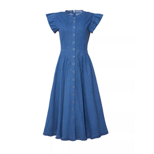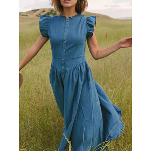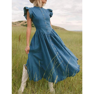 Ruffled Cap Sleeve Denim Dress