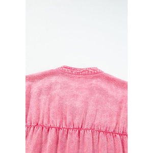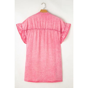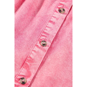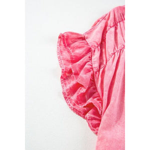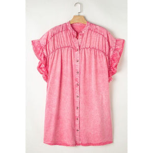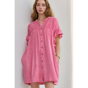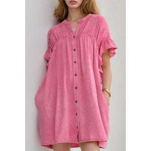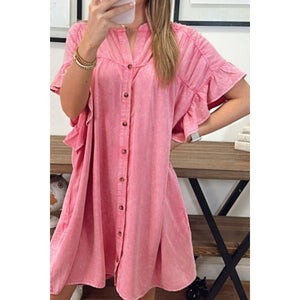 Ruffled Short Sleeve Buttoned Denim Mini Dress