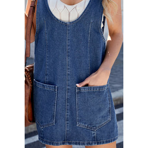 Scoop Neck Denim Overall Dress with Pockets