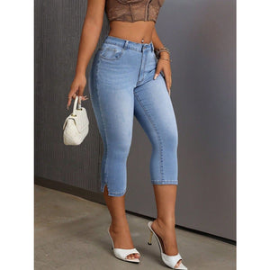 Side Slit Skinny Jeans with Pockets