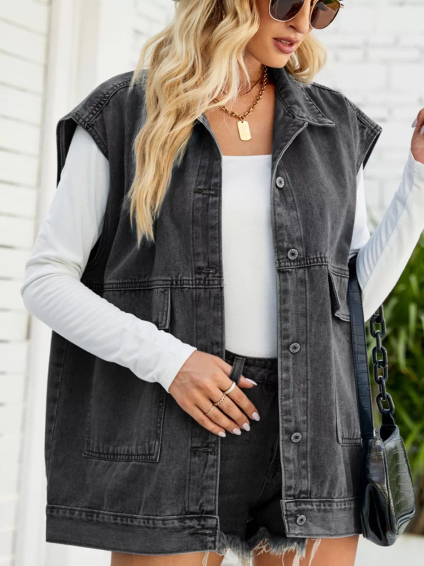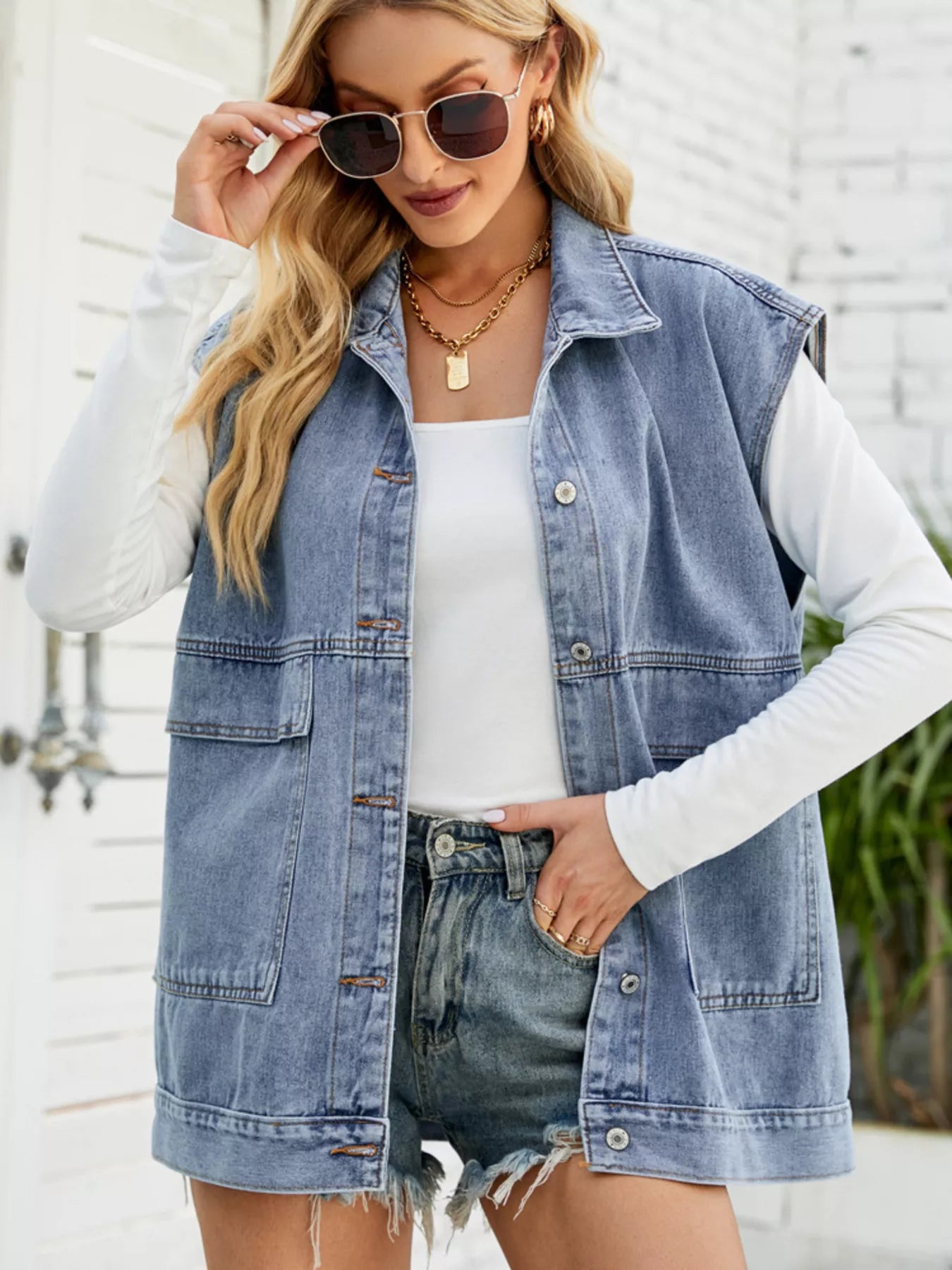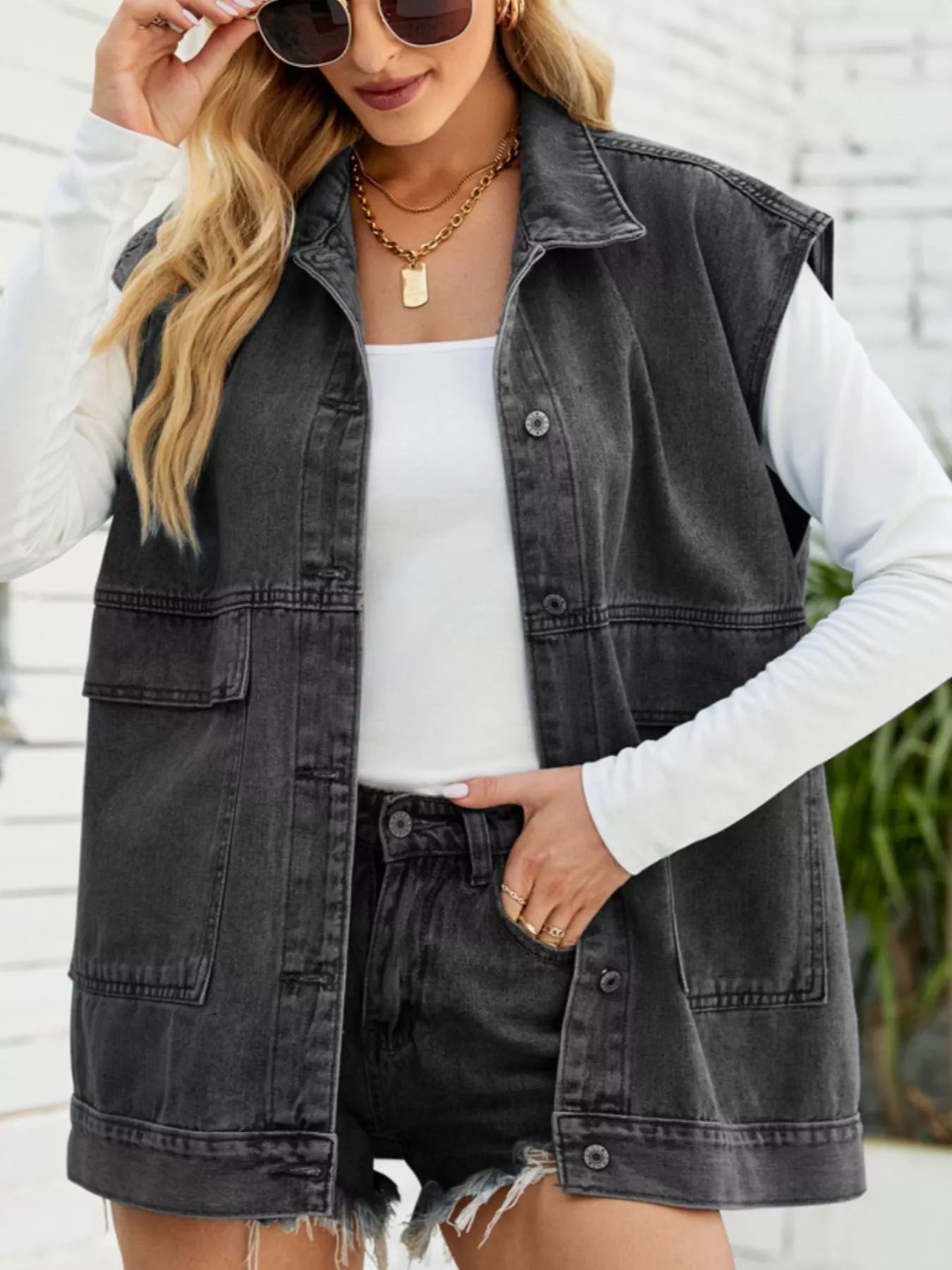 Sleeveless Button-Down Denim Jacket