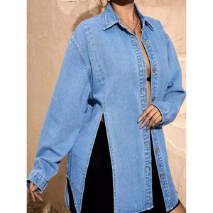 Slit Button Up Denim Shirt