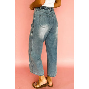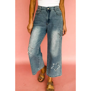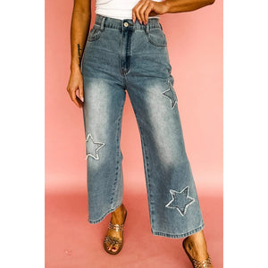 Star Embroidered High Waist Wide Leg Jeans