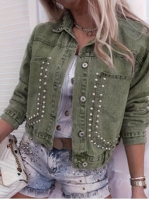 Studded Button Up Wash Denim Jacket