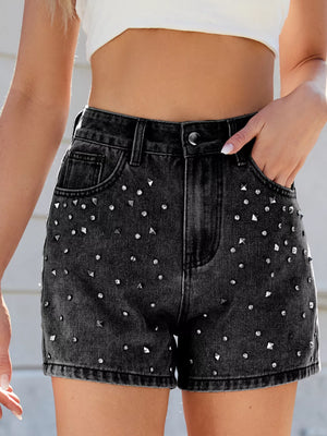 Studded High Waist Denim Shorts