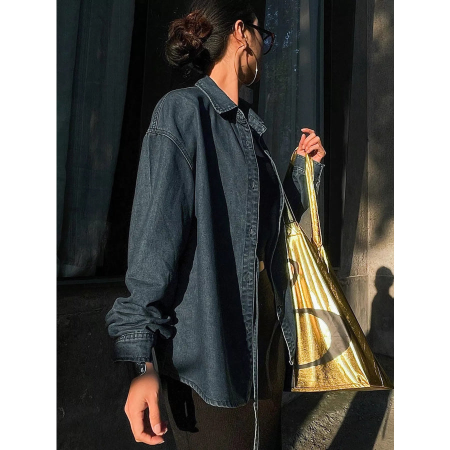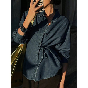 Tie-Waist Long Sleeve Denim Jacket