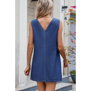 V-Neck Sleeveless Denim Dress