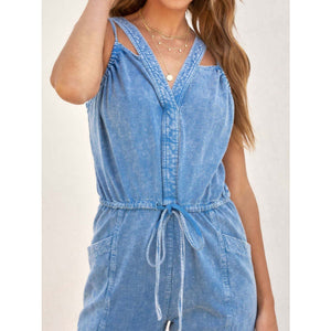 V-Neck Sleeveless Denim Jumpsuit