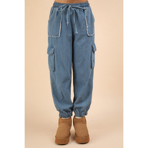 VERY J Washed Drawstring Jogger Cargo Jeans