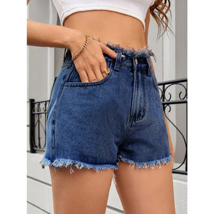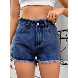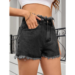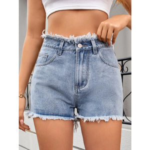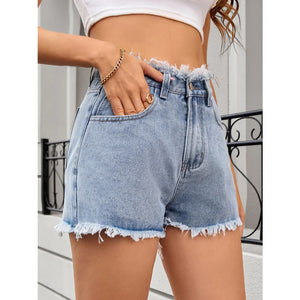 Washed Raw Hem Denim Shorts