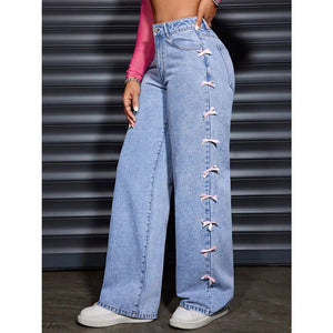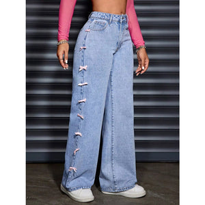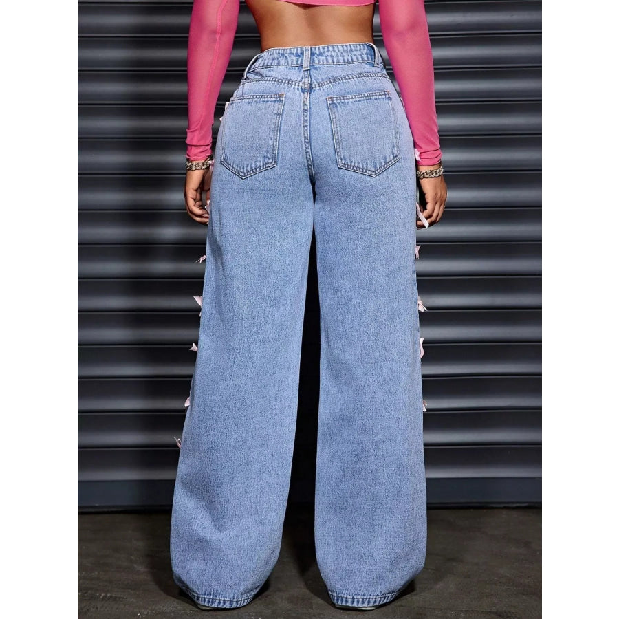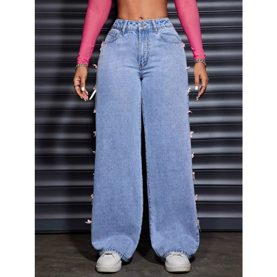 Wide Leg Jeans with Bow Decor