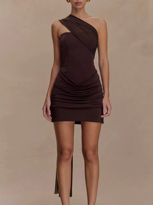 Asymmetrical One-Shoulder Ruched Mini Dress