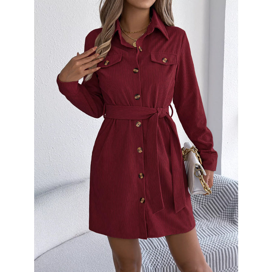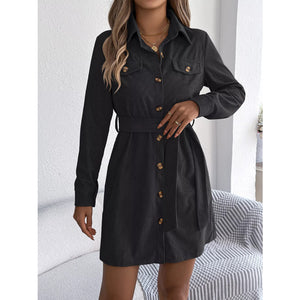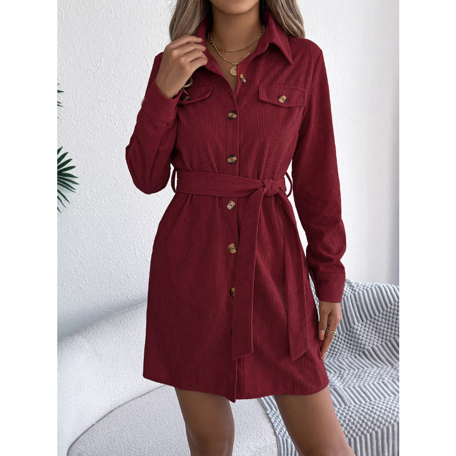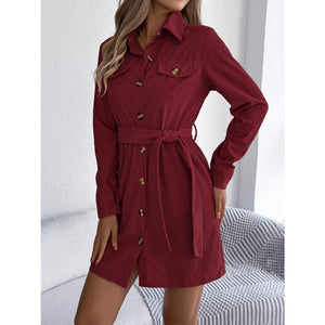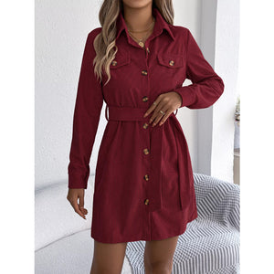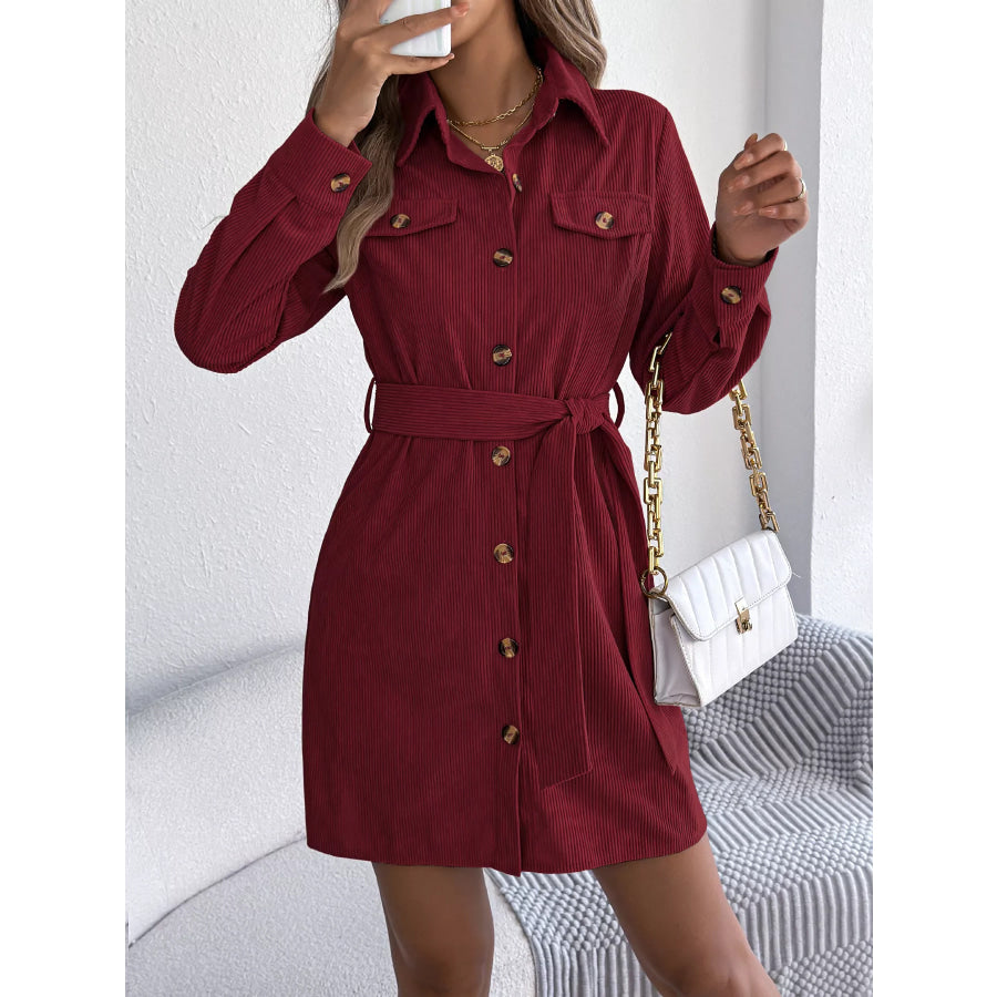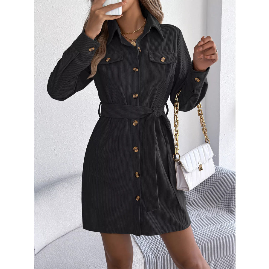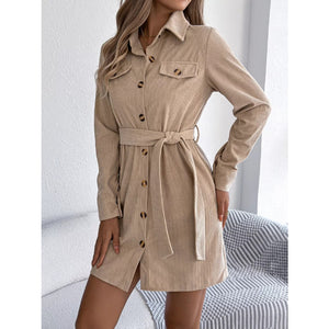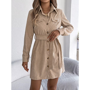 Button-Front Corduroy Shirt Dress