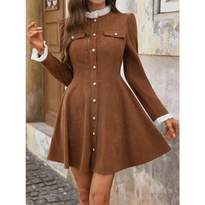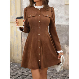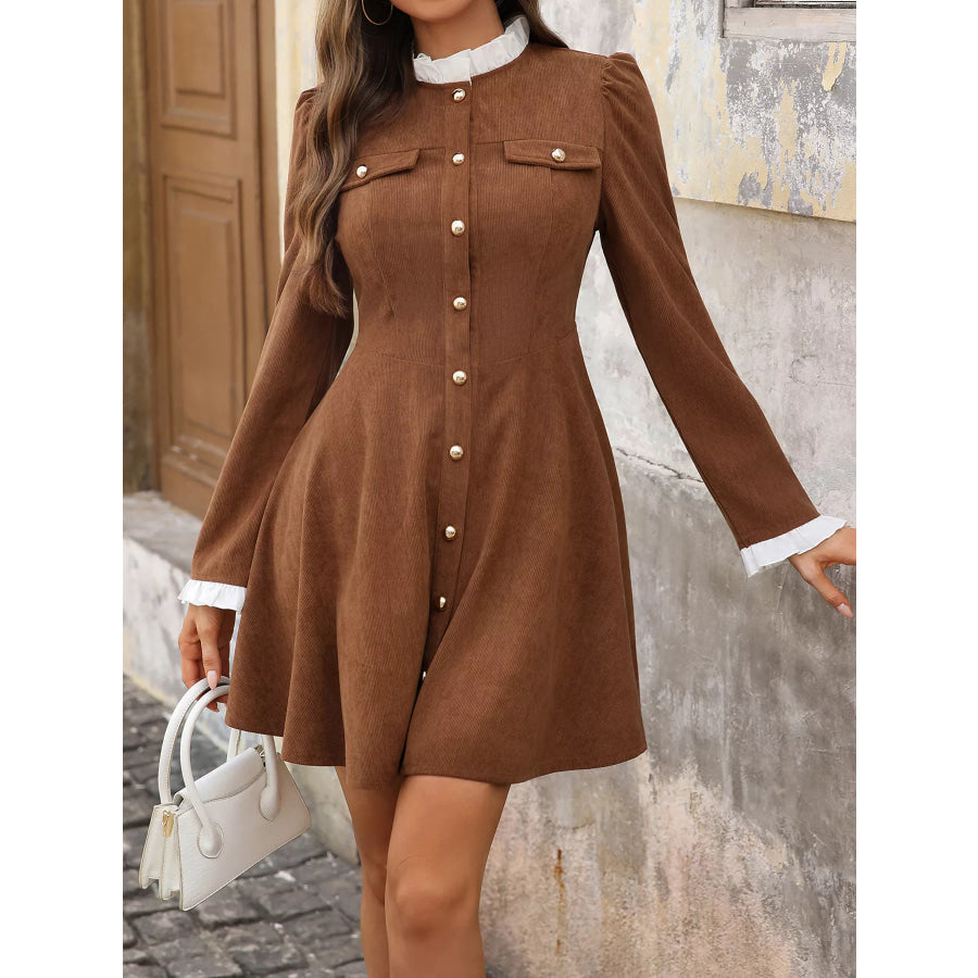 Button-Front Long Sleeve Dress
