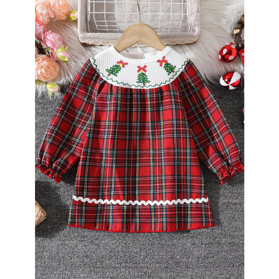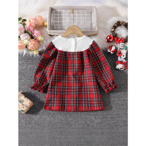 Children's Christmas Plaid Long Sleeve Dress