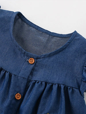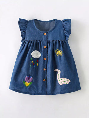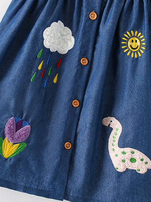 Children's Embroidered Denim Button-Front Dress