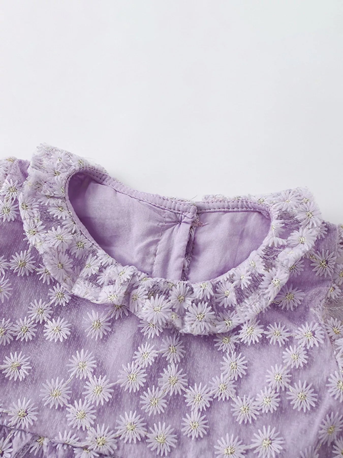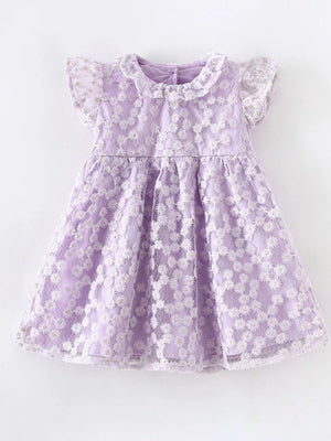 Children's Floral Lace Ruffle Sleeve Party Dress
