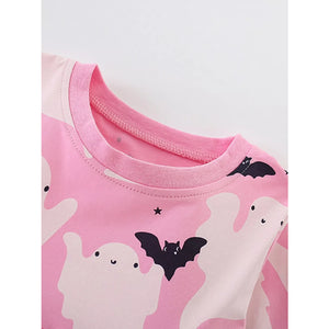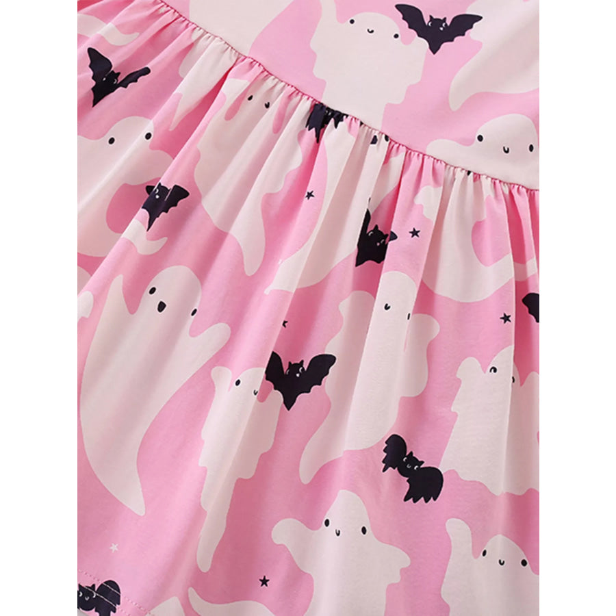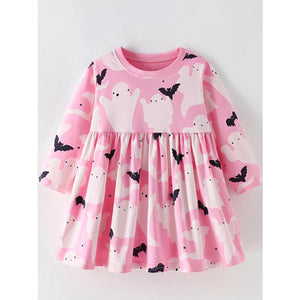 Children's Halloween Ghost & Bat Print Long Sleeve Dress
