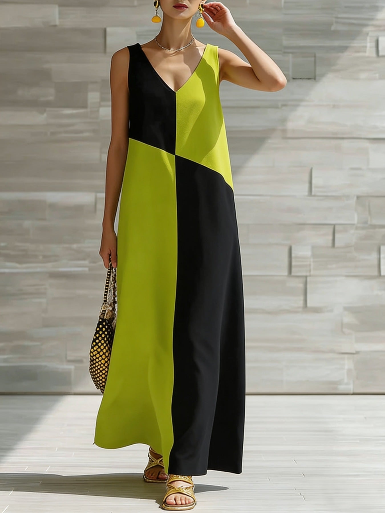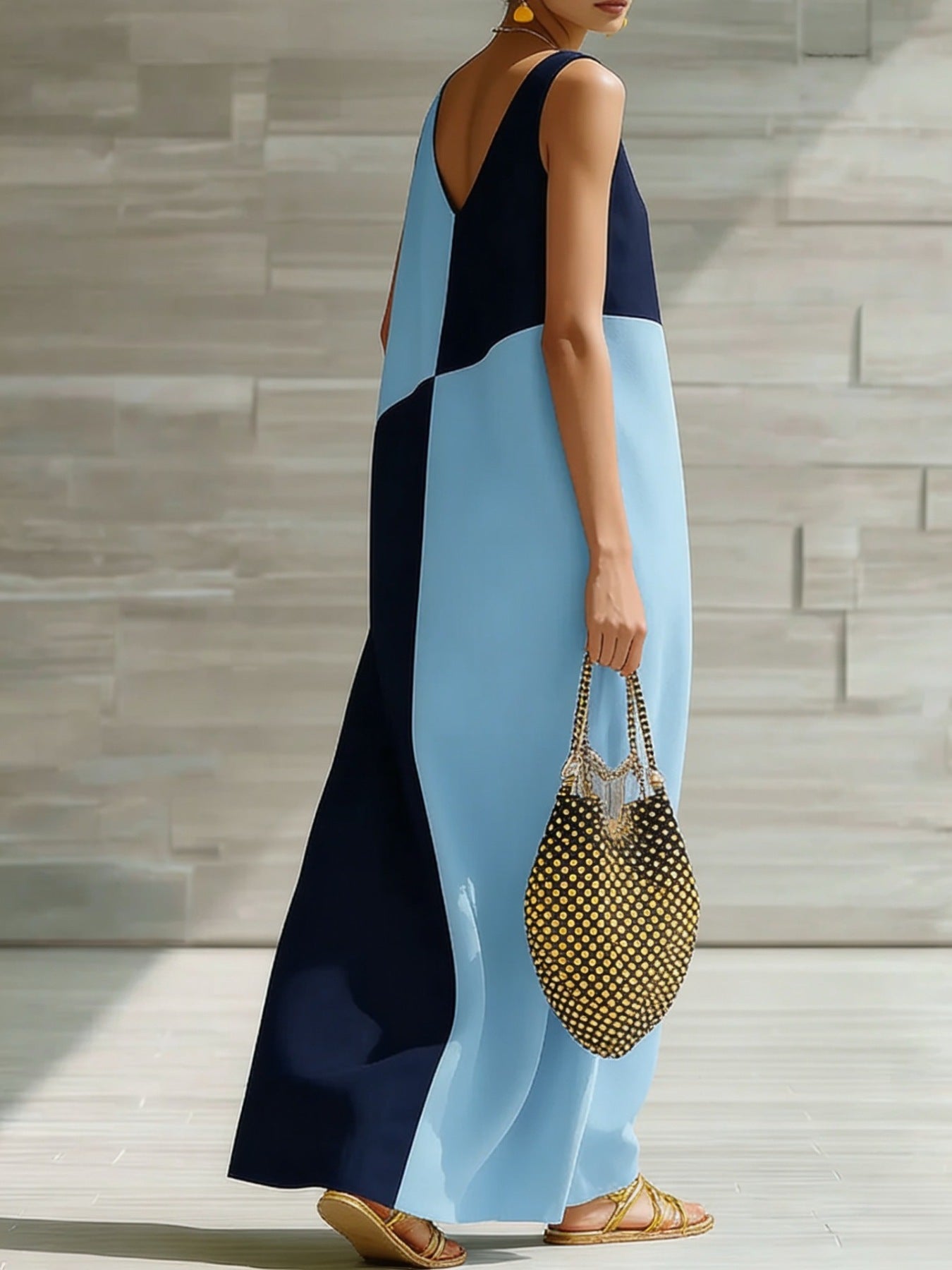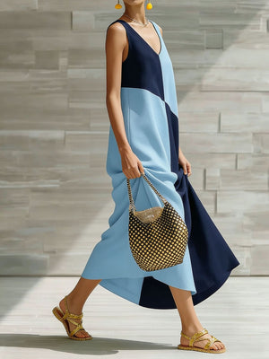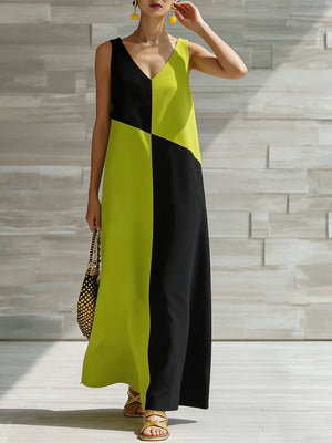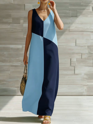 Color Block Sleeveless Maxi Dress