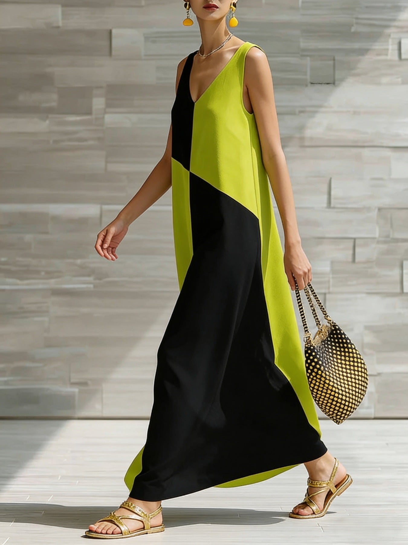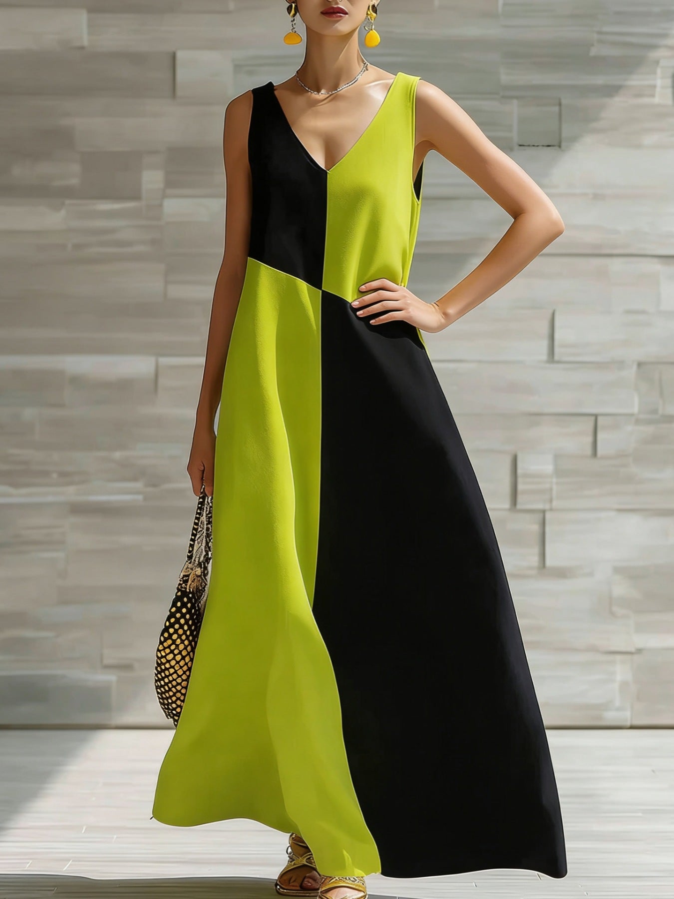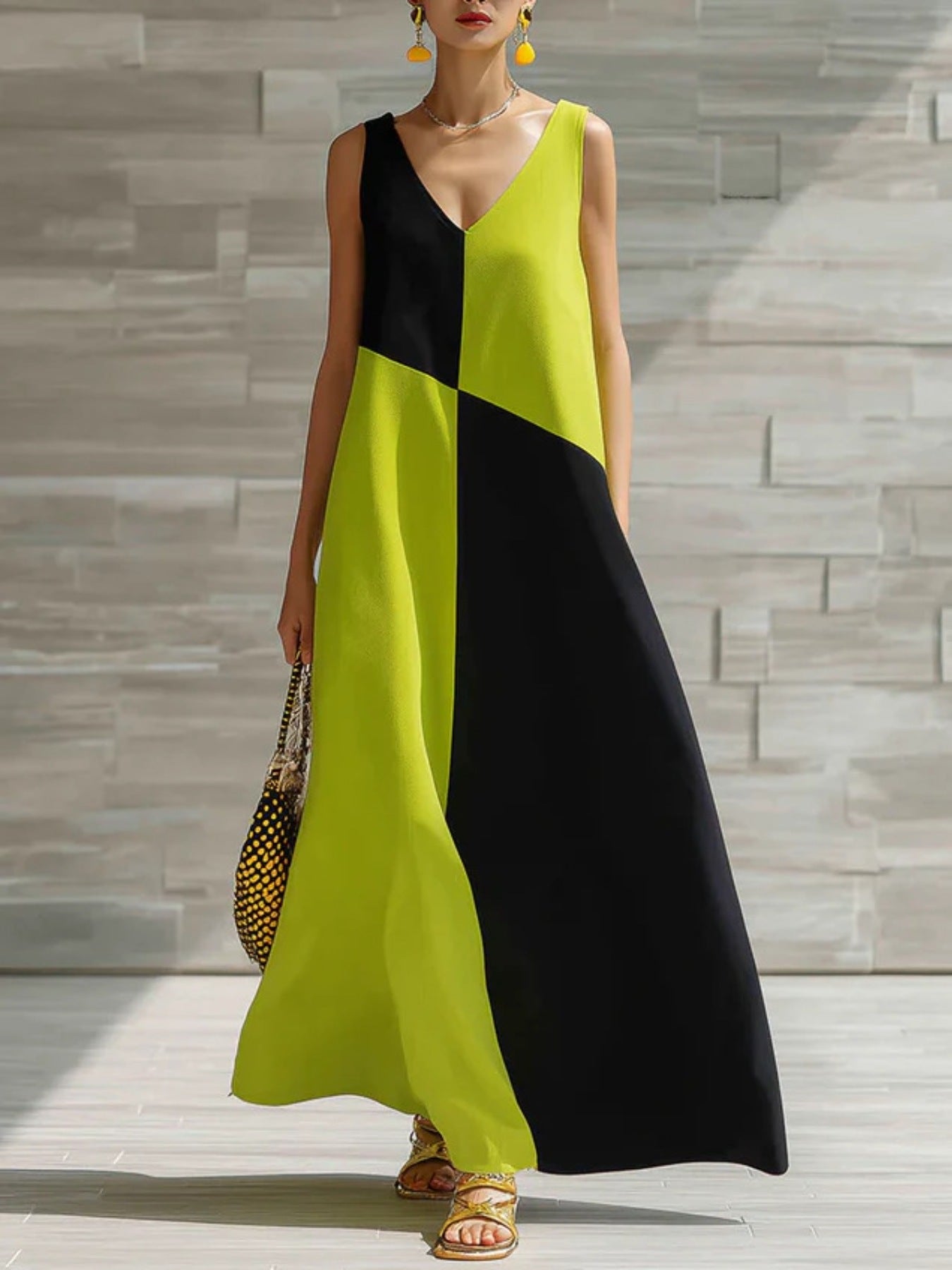 Color Block Sleeveless Maxi Dress