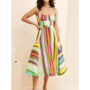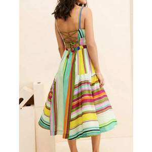 Colorful Striped Spaghetti Strap Midi Dress