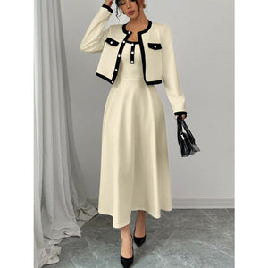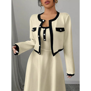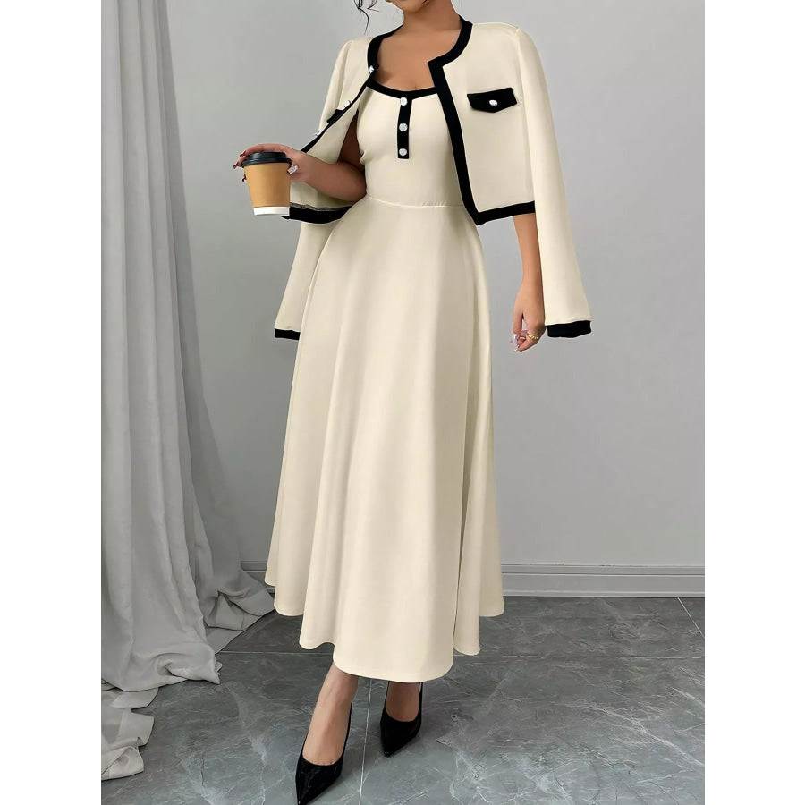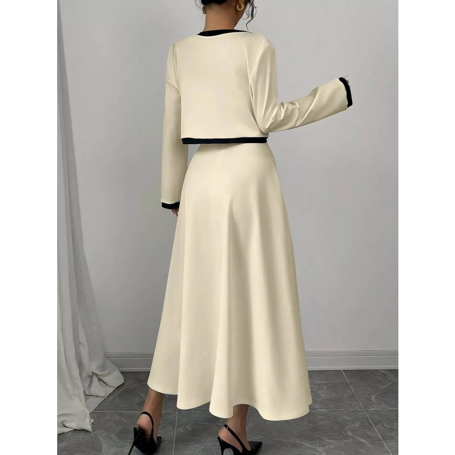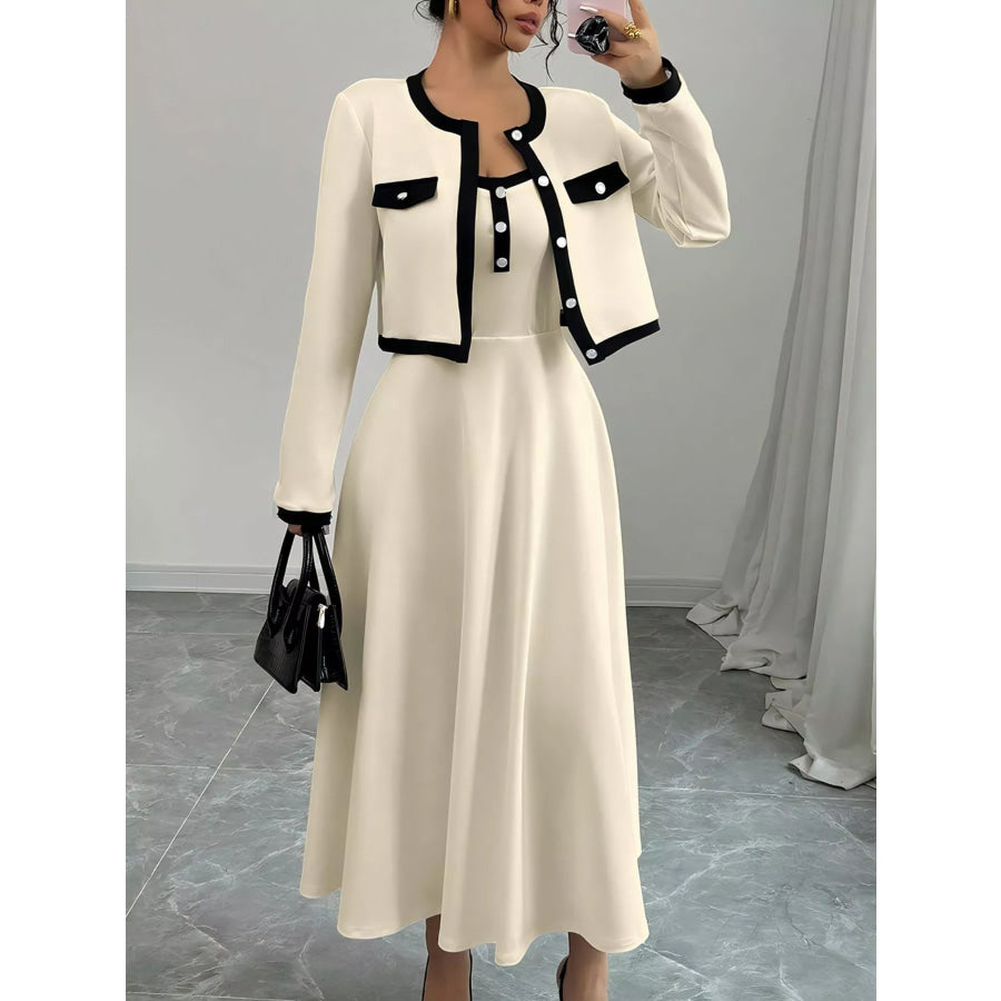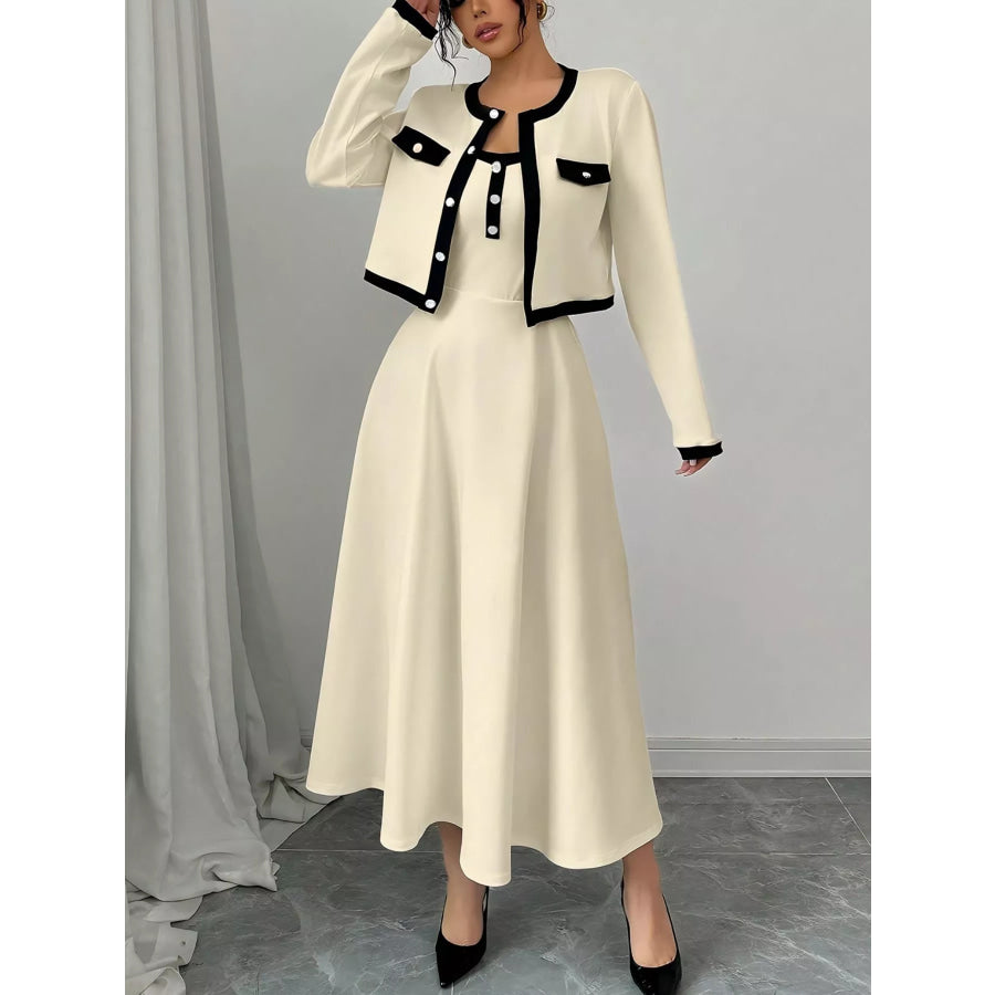 Contrast Trim Maxi Dress and Cropped Cardigan Set