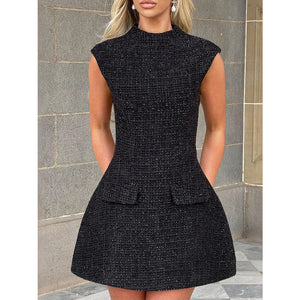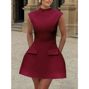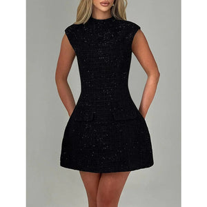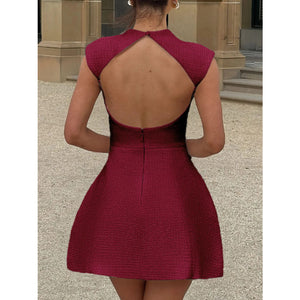Cutout Back Round Neck Cap Sleeve Mini Dress