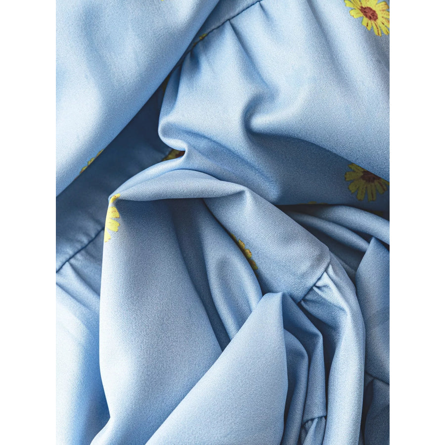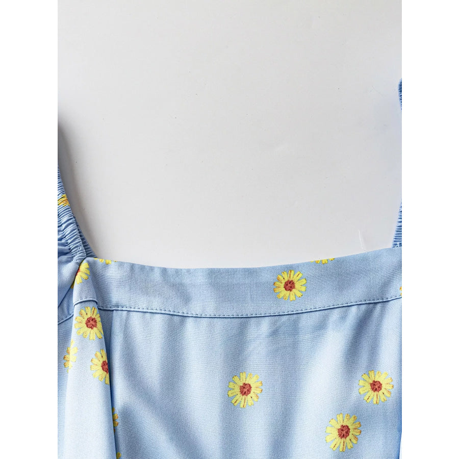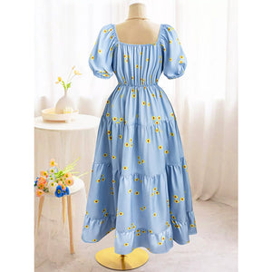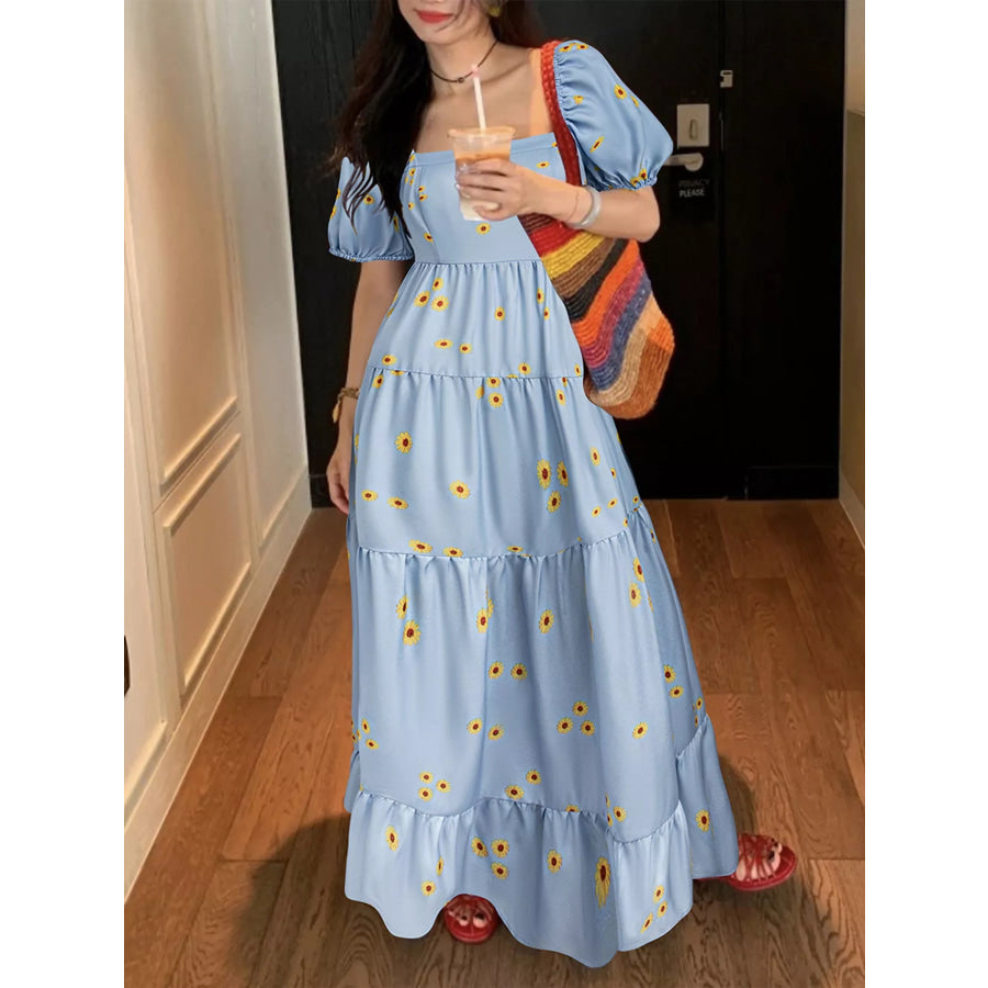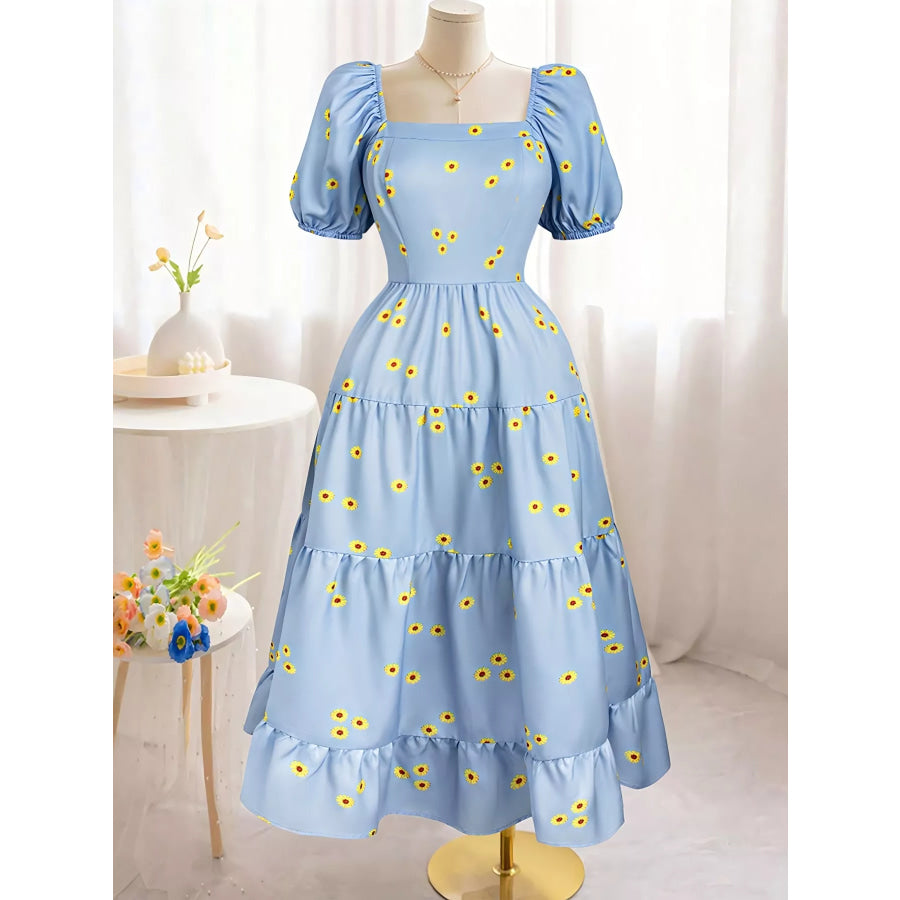 Daisy Print Puff Sleeve Tiered Maxi Dress