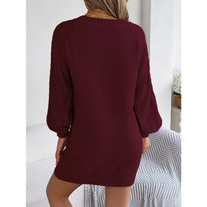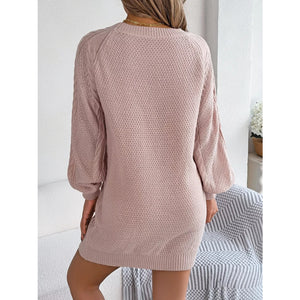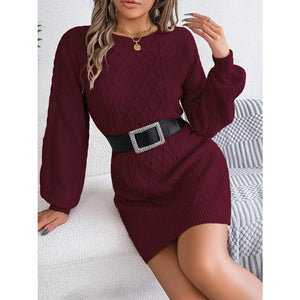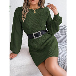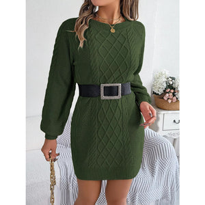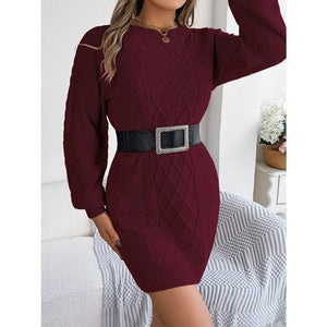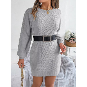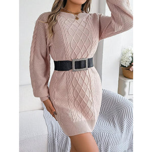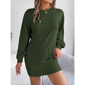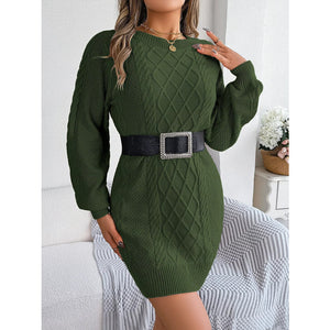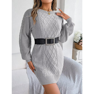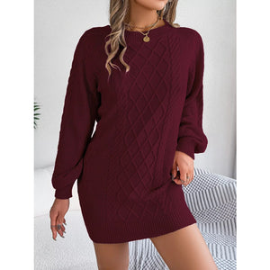 Diamond Cable Knit Sweater Dress with Long Sleeves