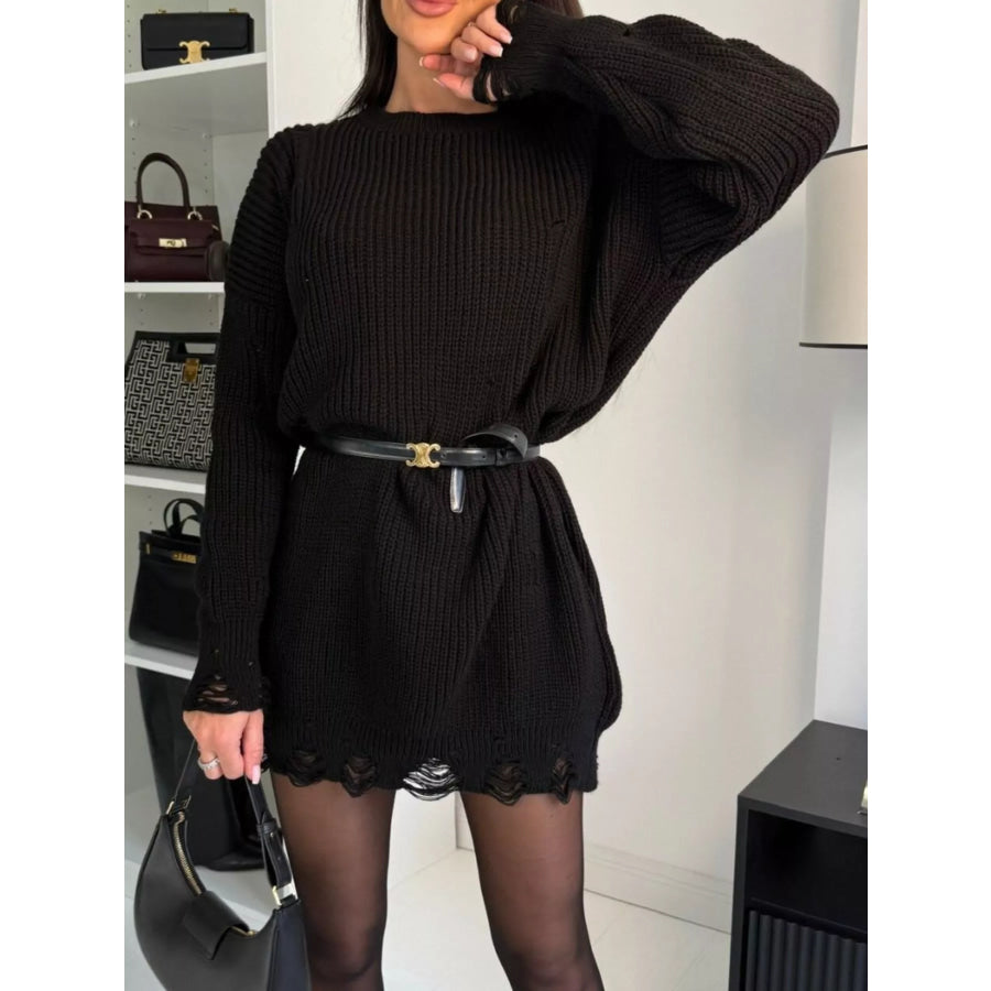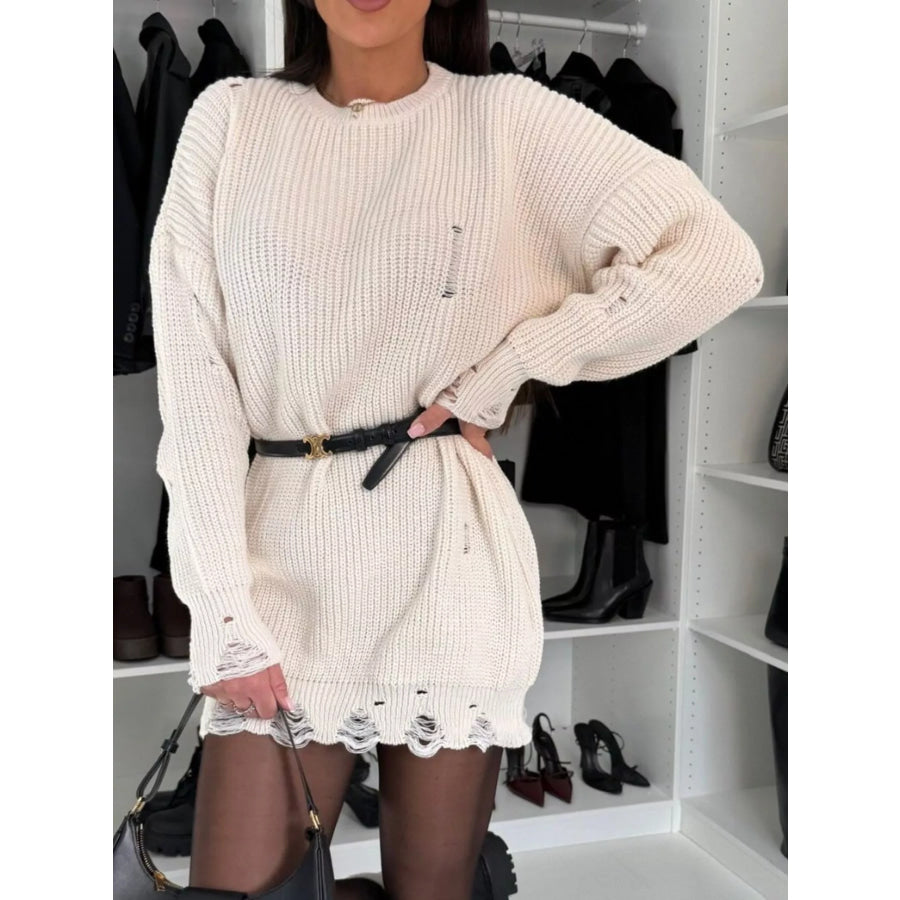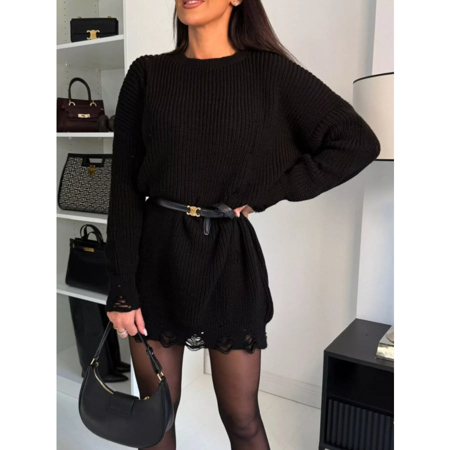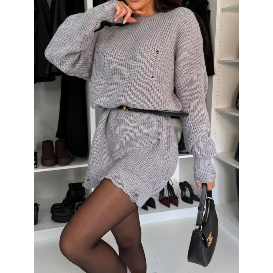 Distressed Round Neck Drop Shoulder Sweater Dress