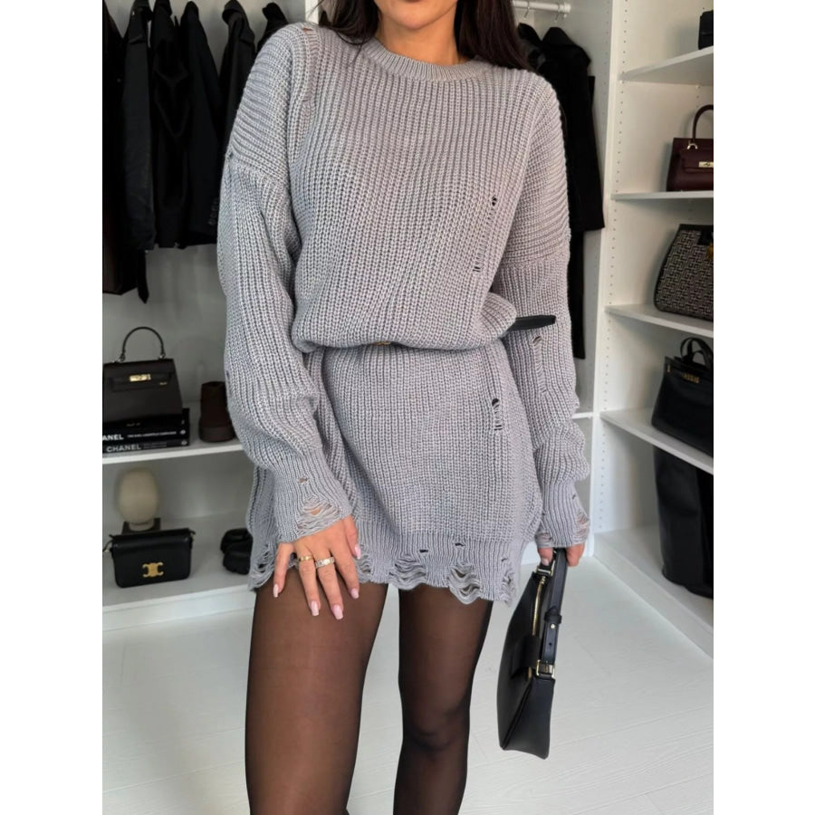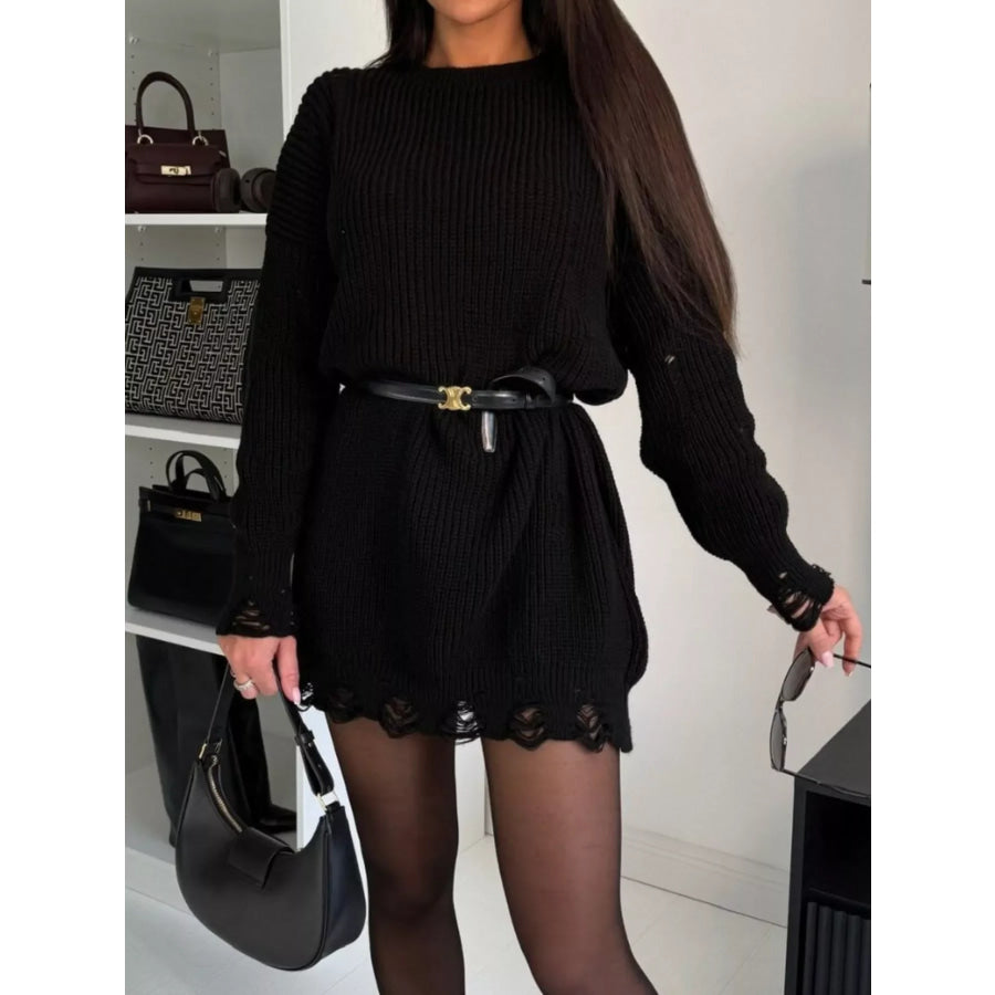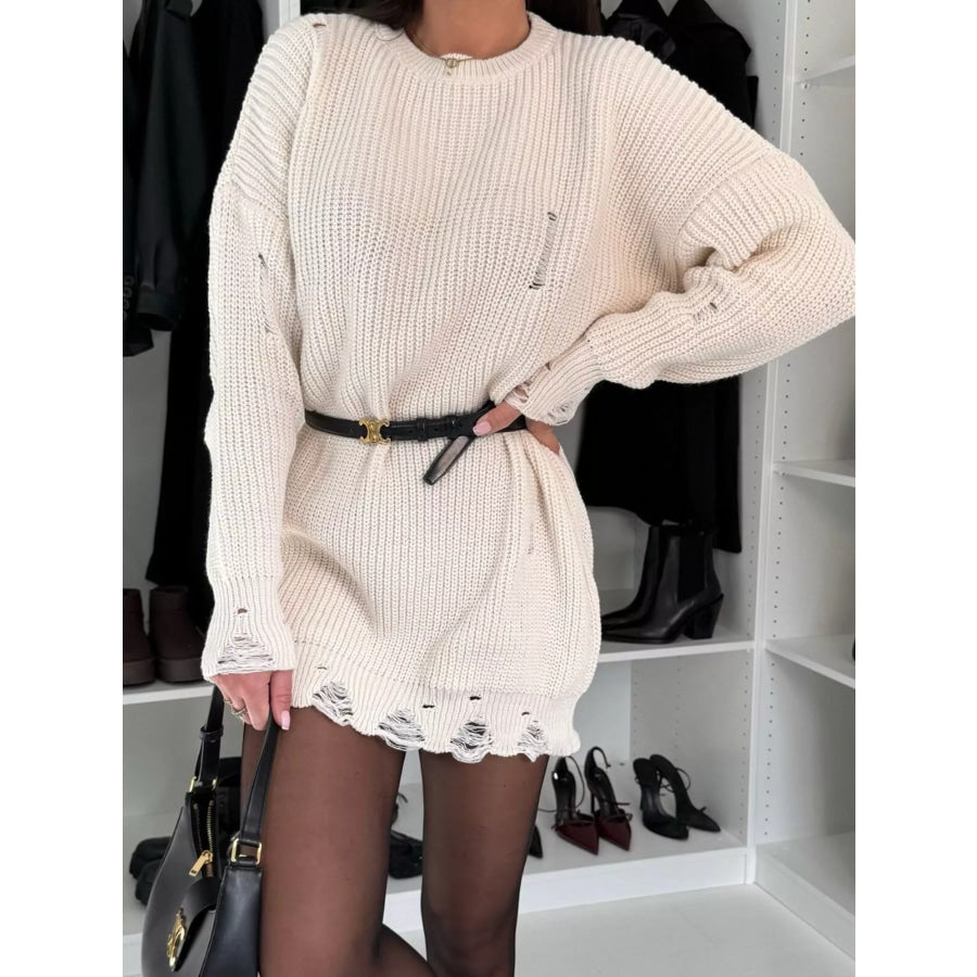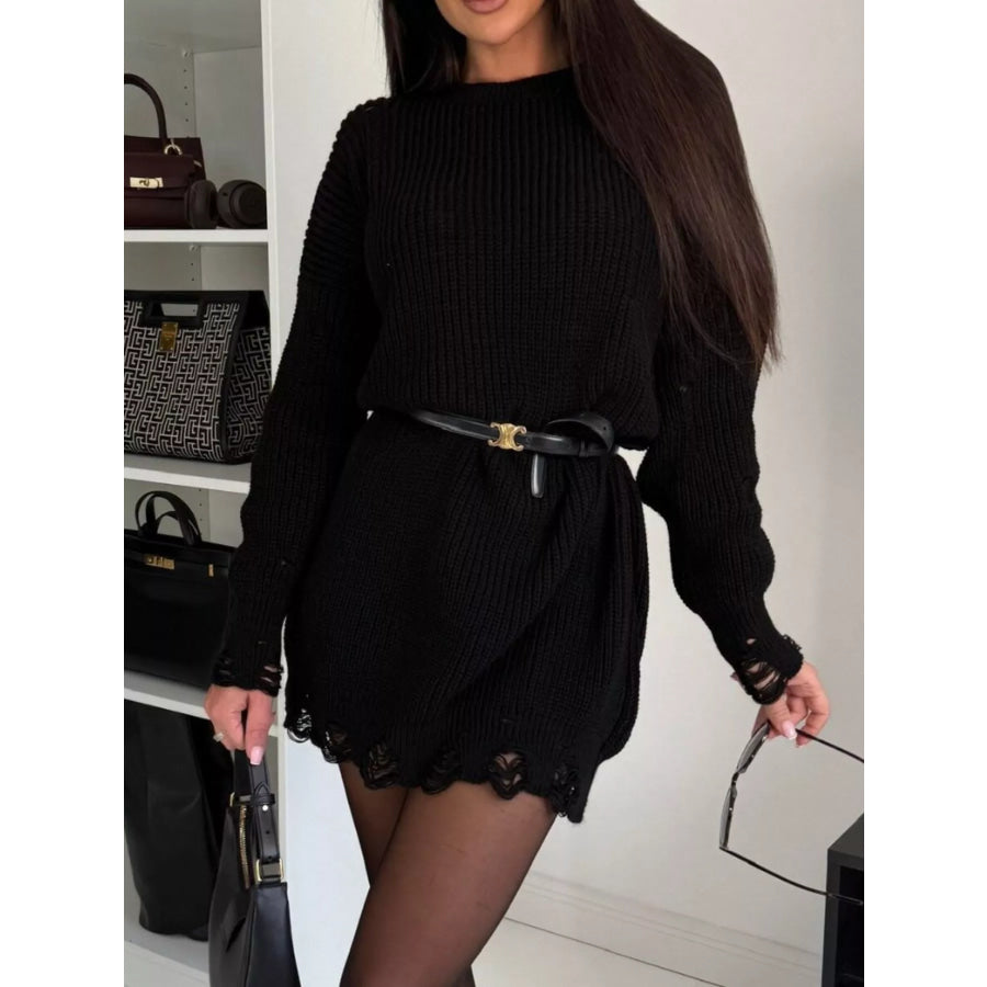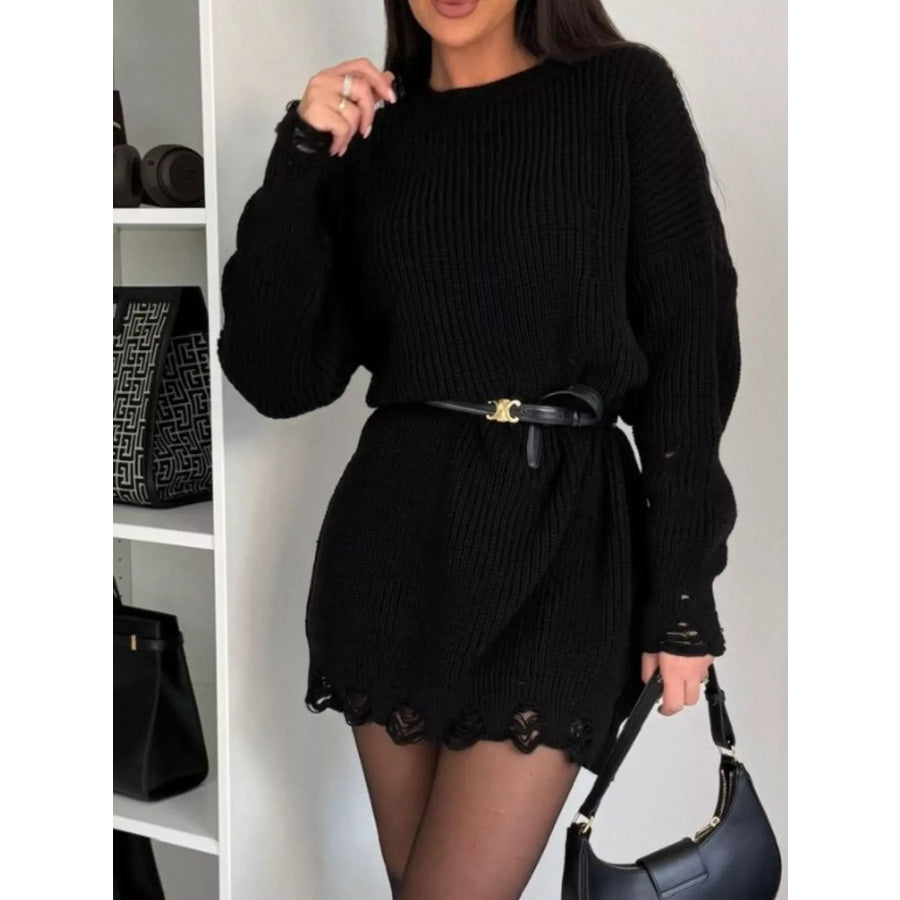 Distressed Round Neck Drop Shoulder Sweater Dress