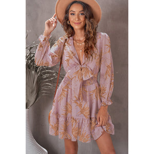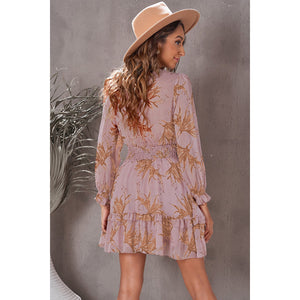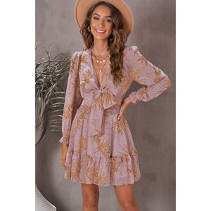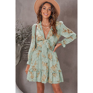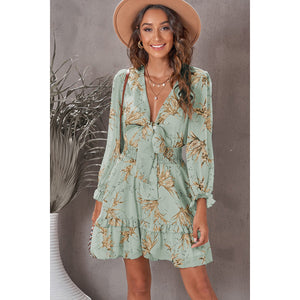 Floral Deep V Flounce Sleeve Mini Dress