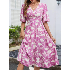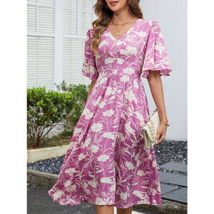 Floral Flutter Sleeve V-Neck Summer Midi Dress