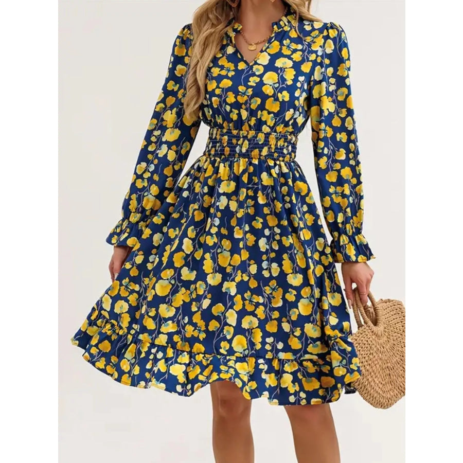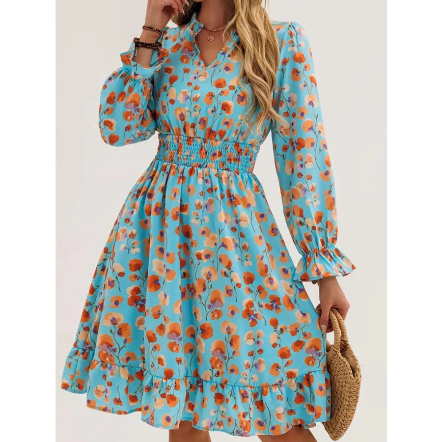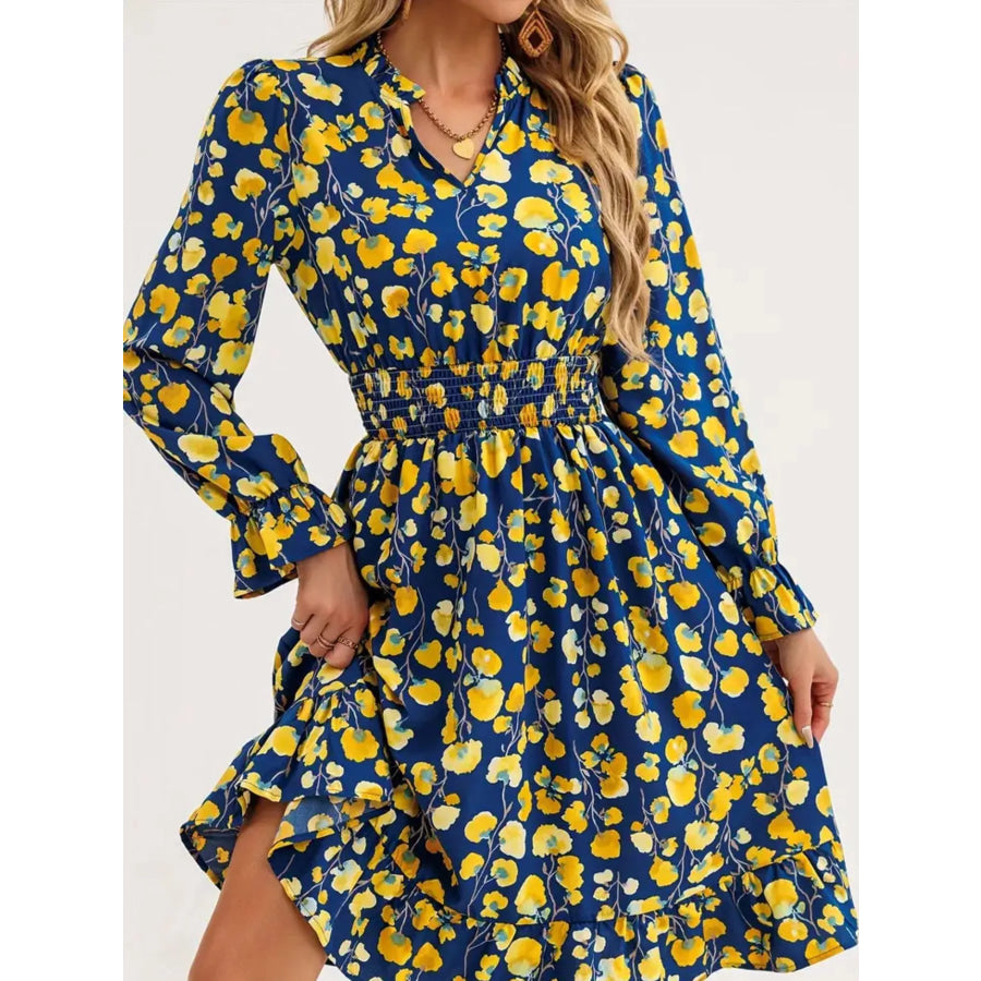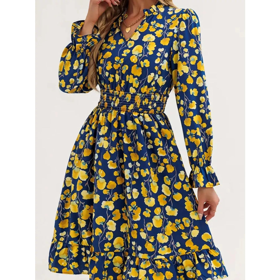 Floral Notched Flounce Sleeve Dress