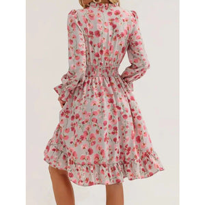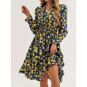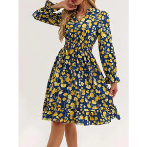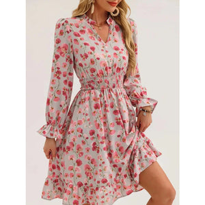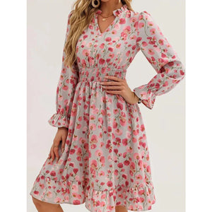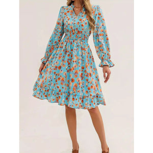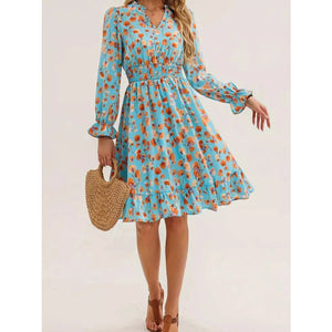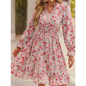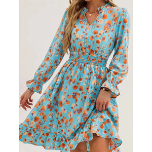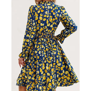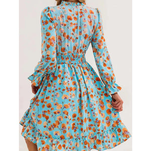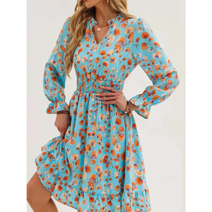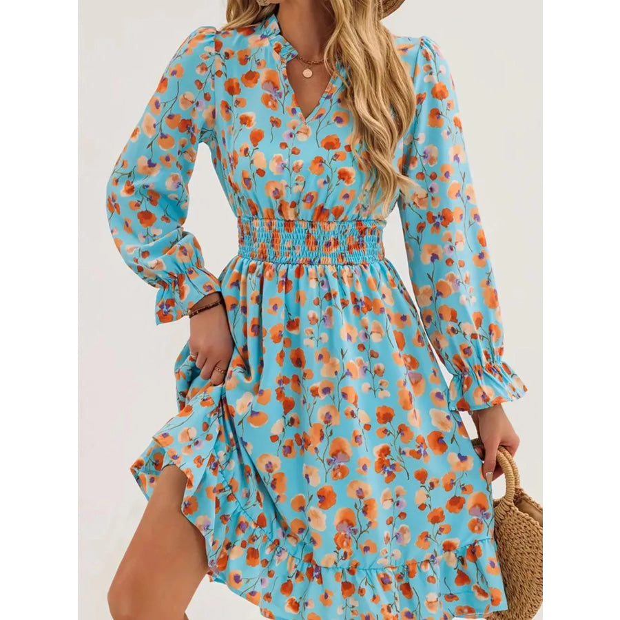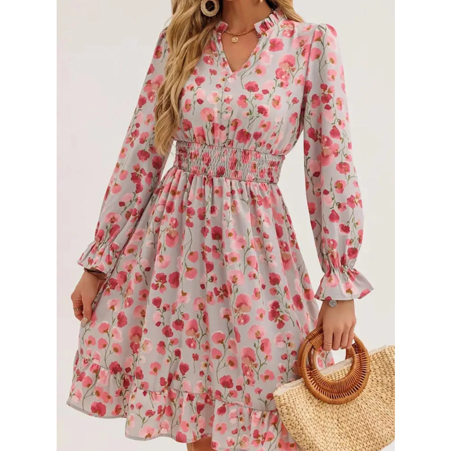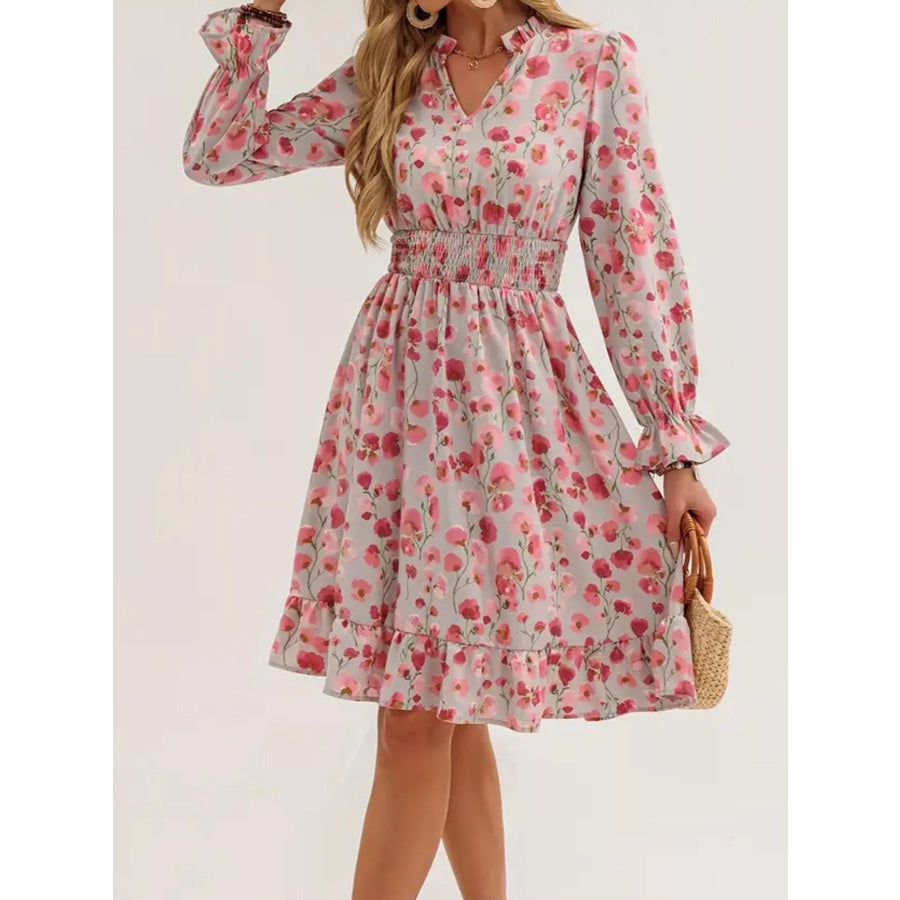 Floral Notched Flounce Sleeve Dress