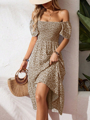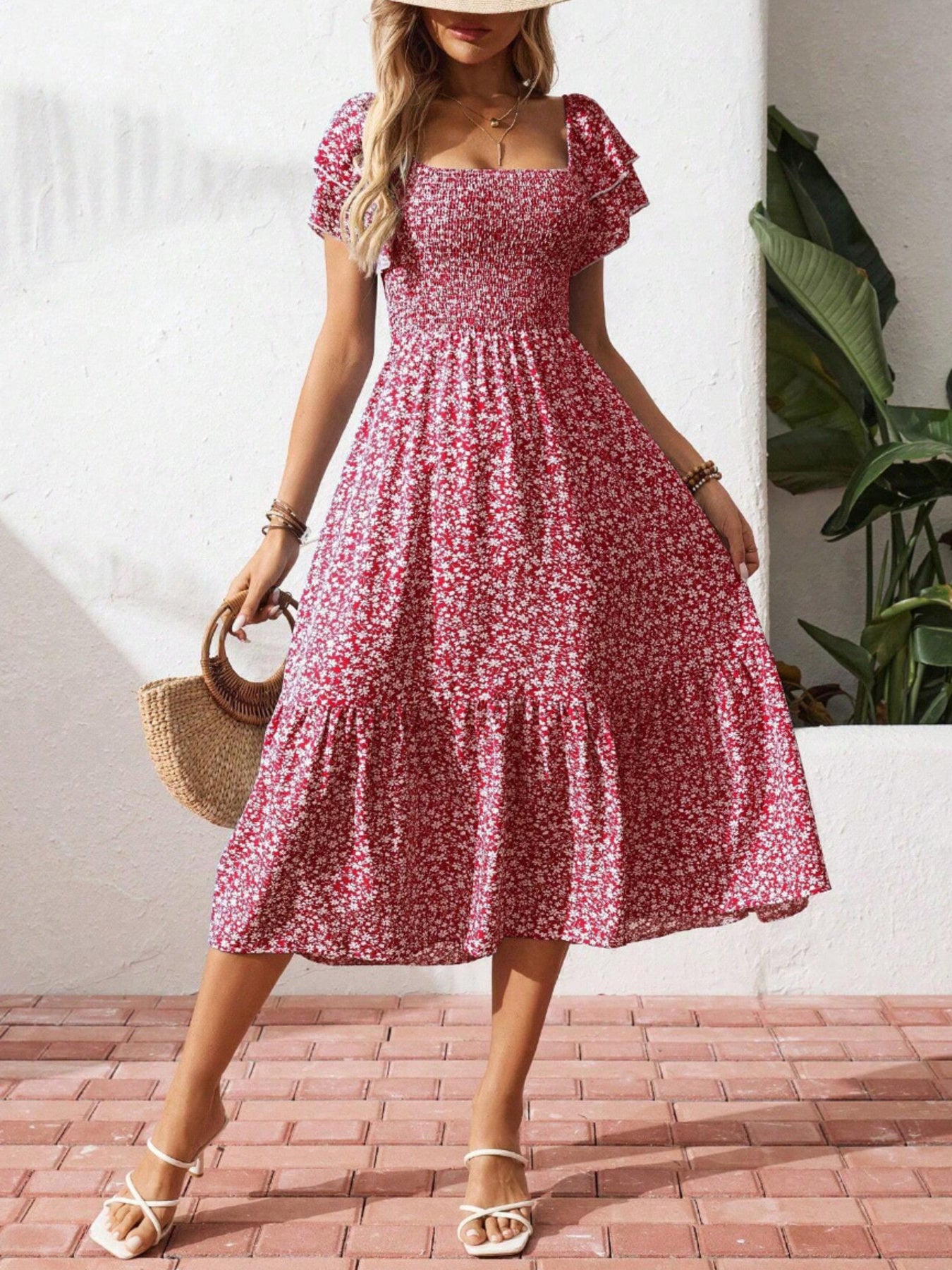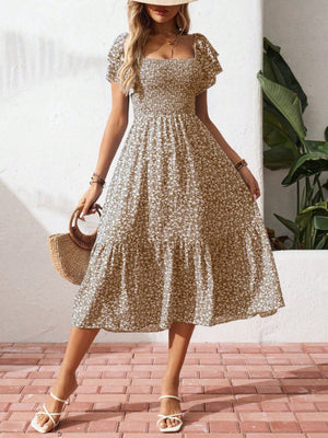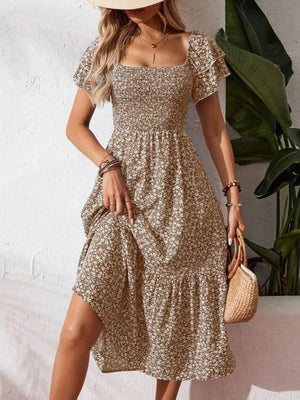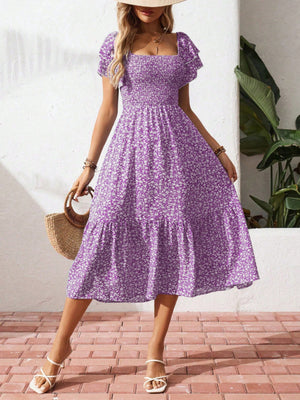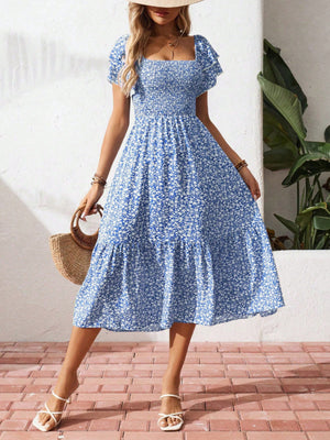 Floral Print Smocked Ruffle Sleeves Dress