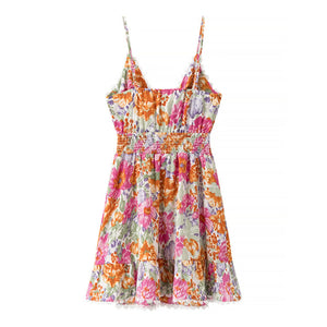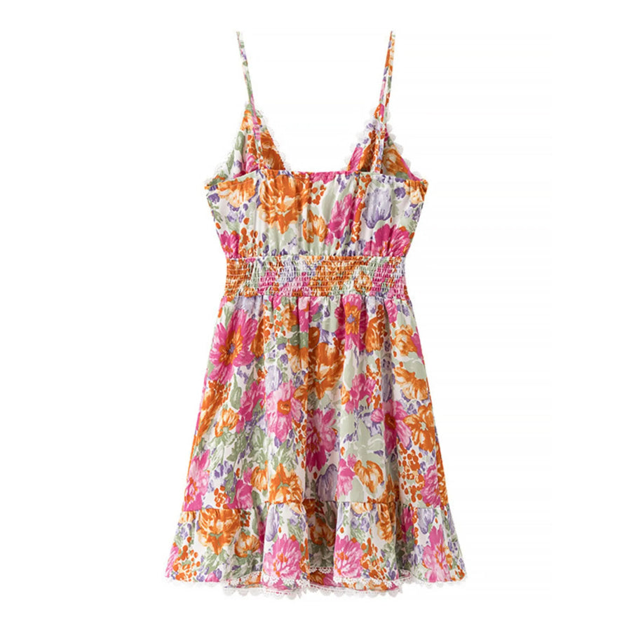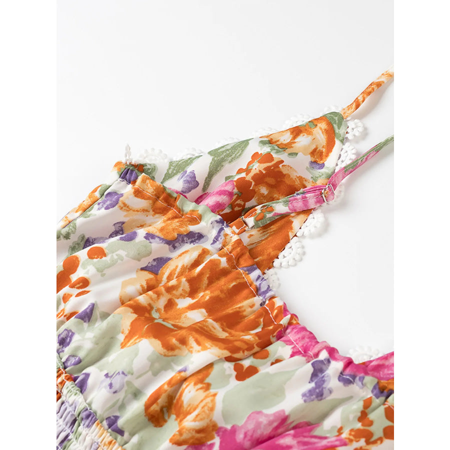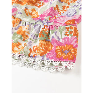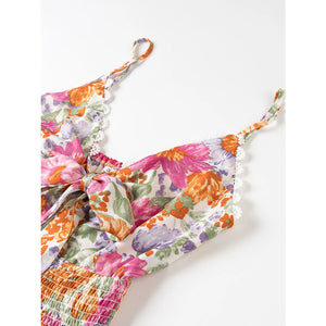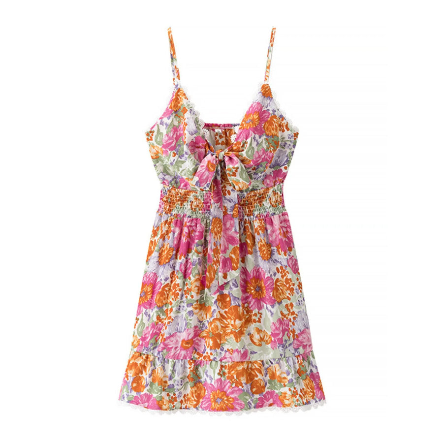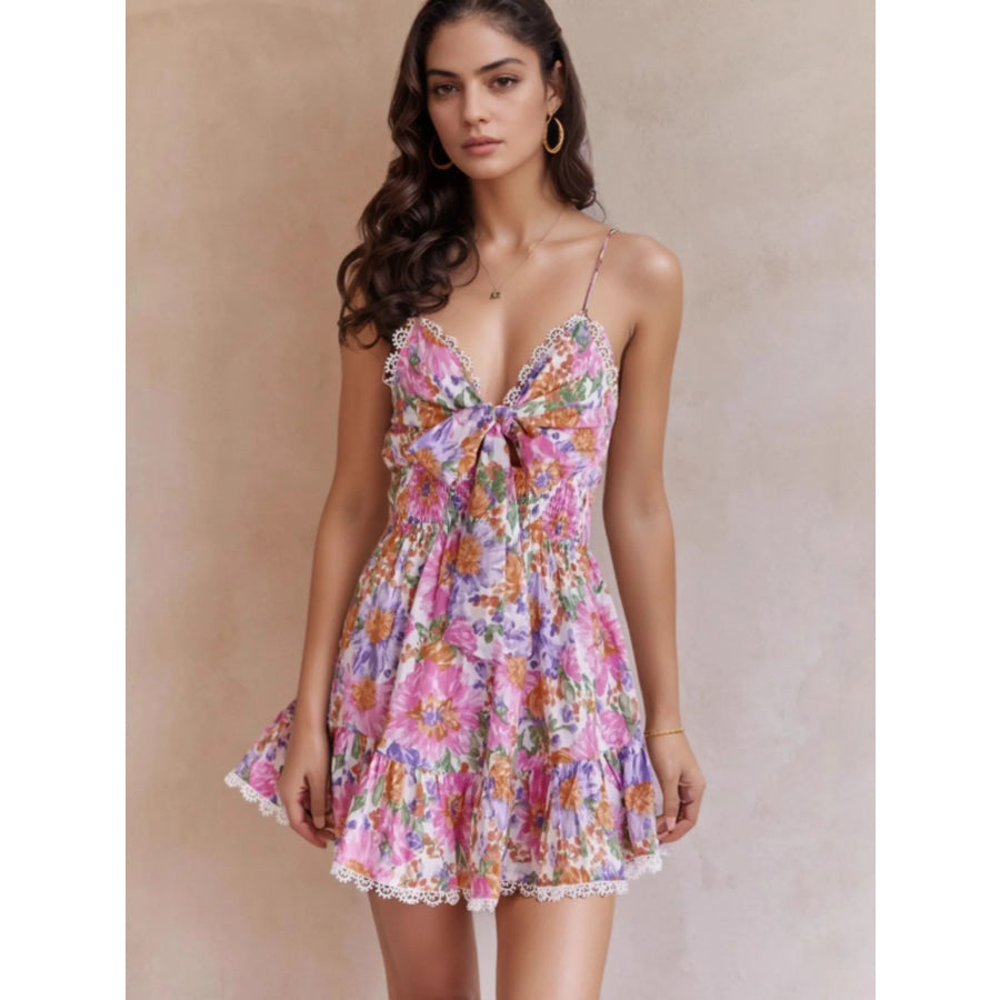 Floral Print Tie-Front Cami Dress with Lace Trim