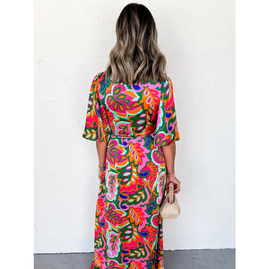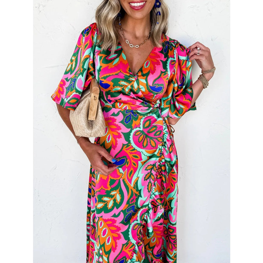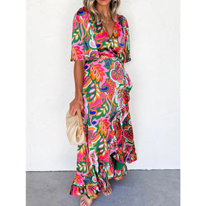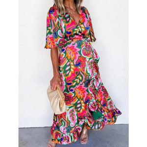 Floral Print Wrap Maxi Dress with Ruffle Details