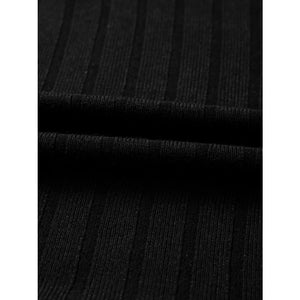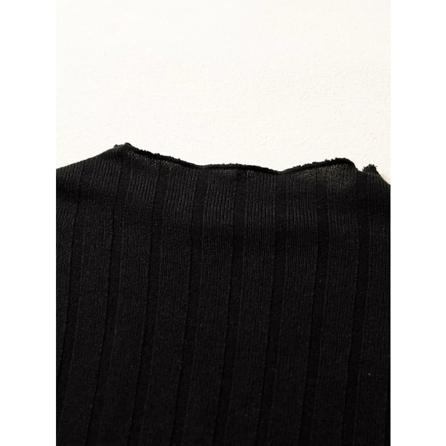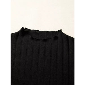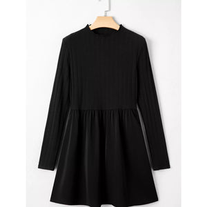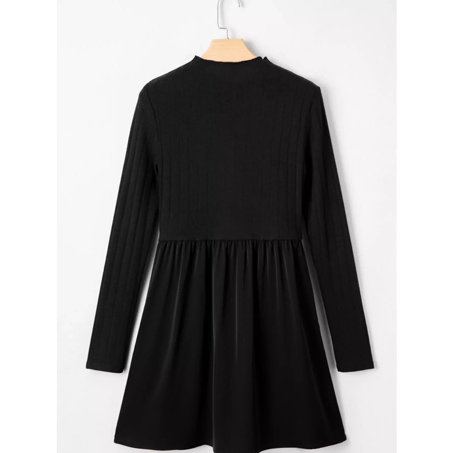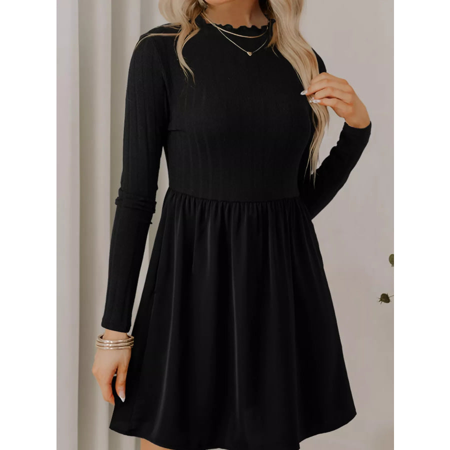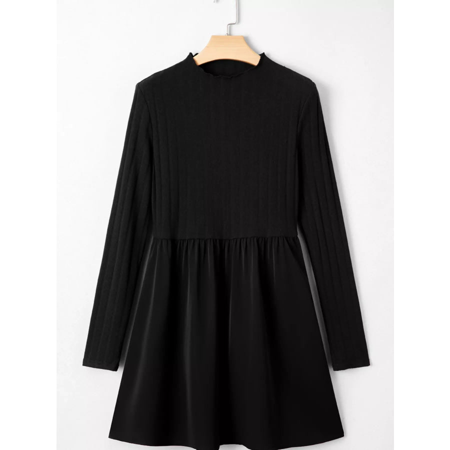 Frilled Neck Ribbed Knit Patchwork Long Sleeve Mini Dress