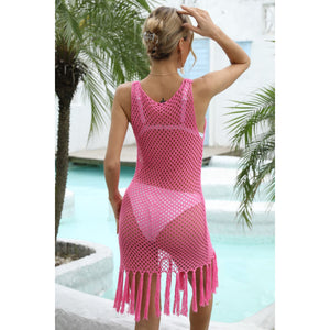 Fringe Hem Openwork Sleeveless Cover-Up Dress