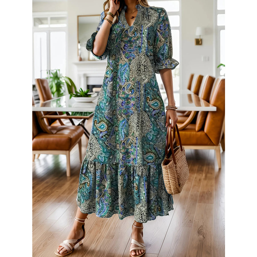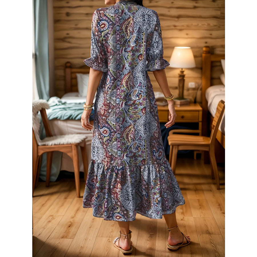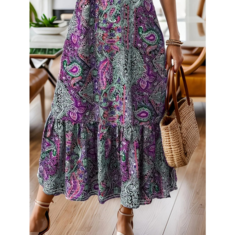Full Size Bohemian Paisley Print Ruffle Hem Midi Dress Plus Size