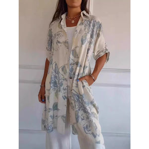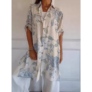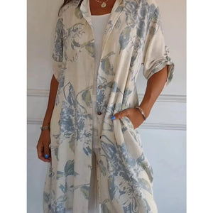 Full Size Floral Print Button-Up Shirt Dress Plus Size