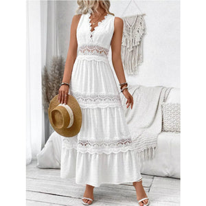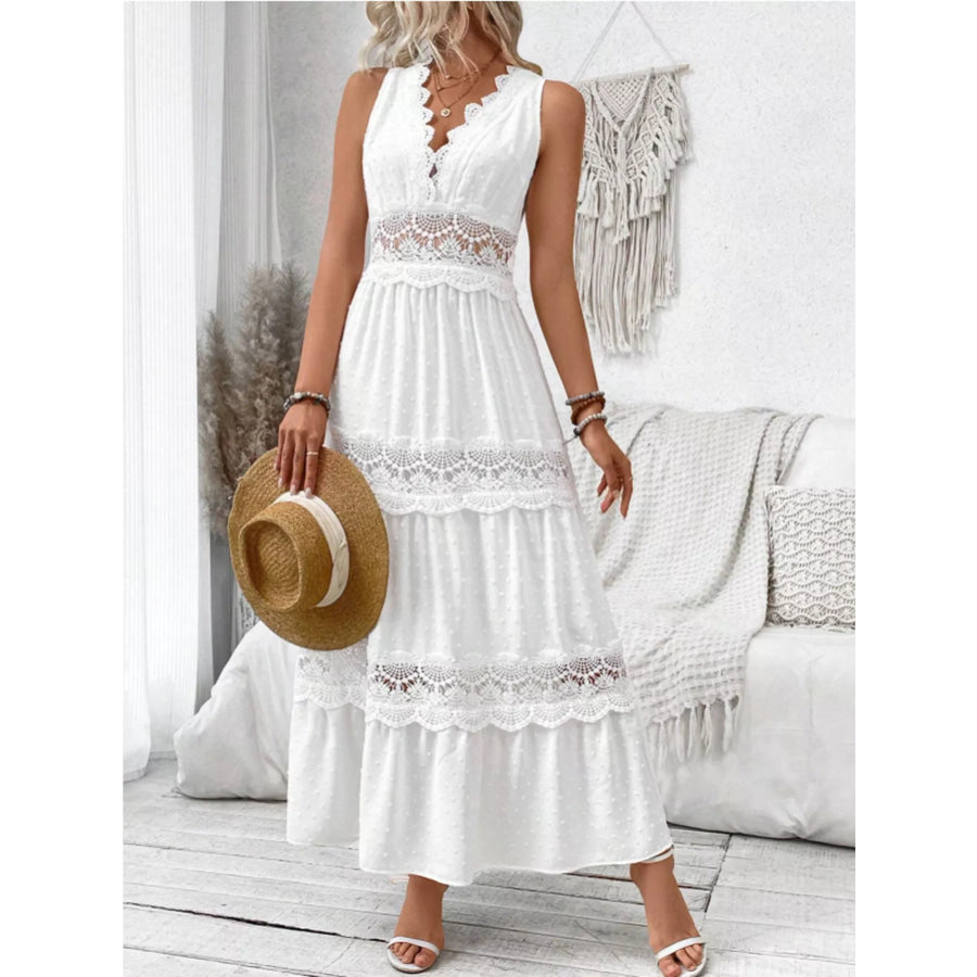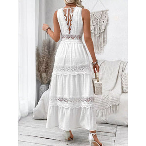 Full Size Lace Detail Tie Back Sleeveless Tiered Dress Plus Size