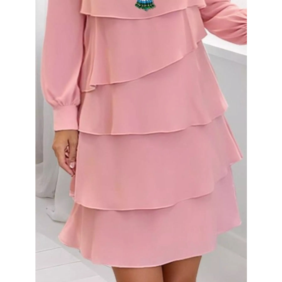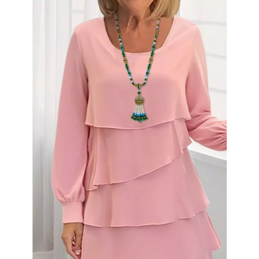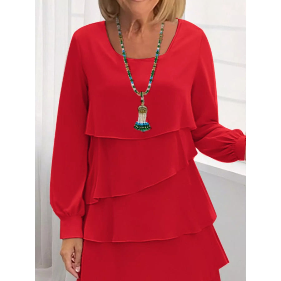 Full Size Layered Long Sleeve Mini Dress Plus Size