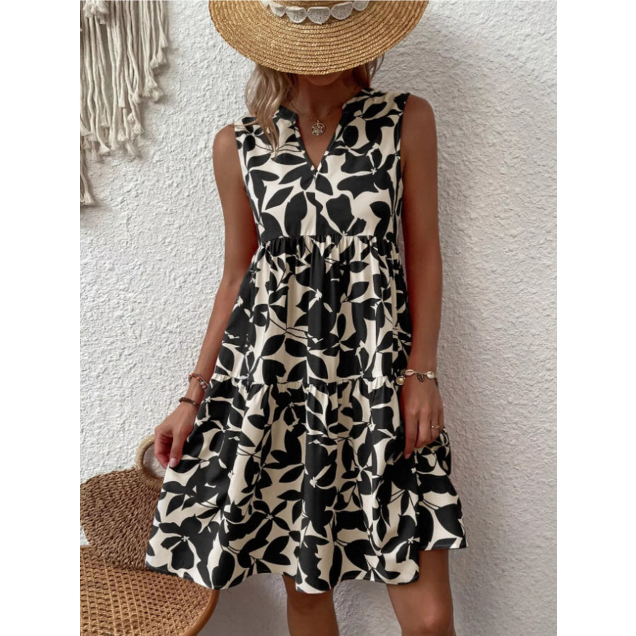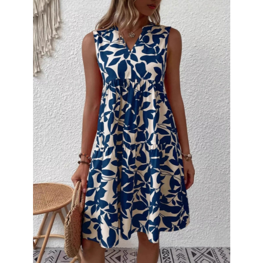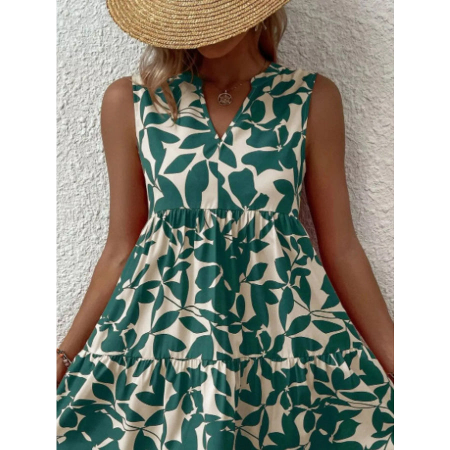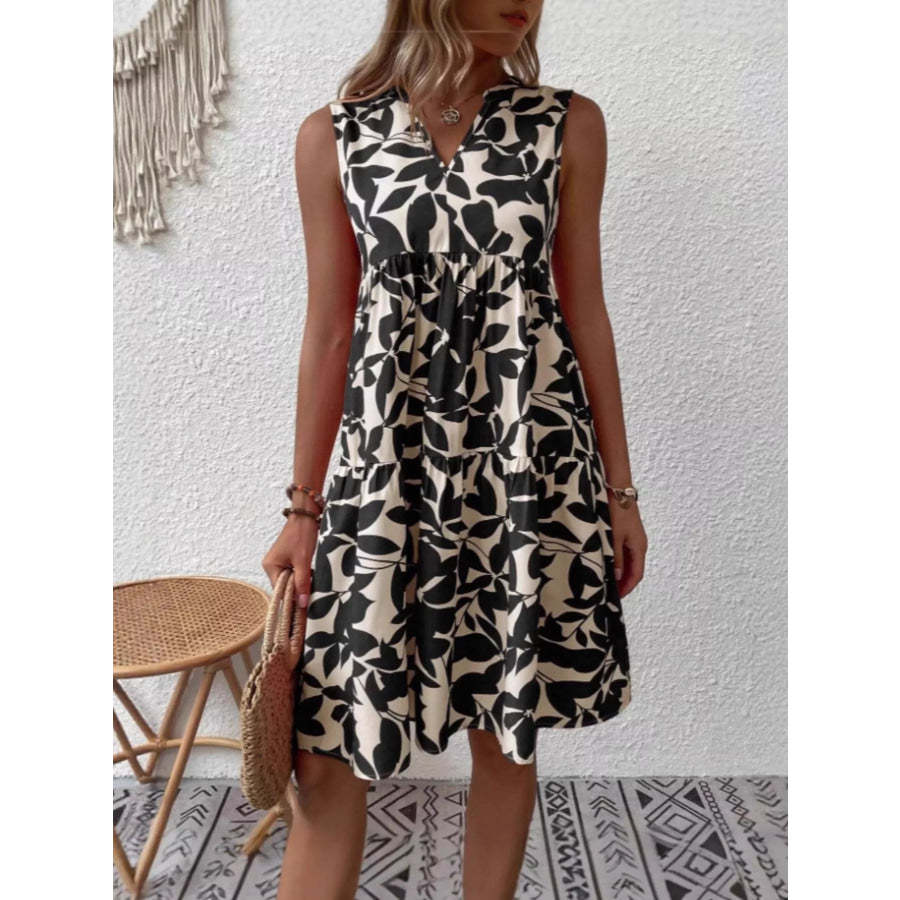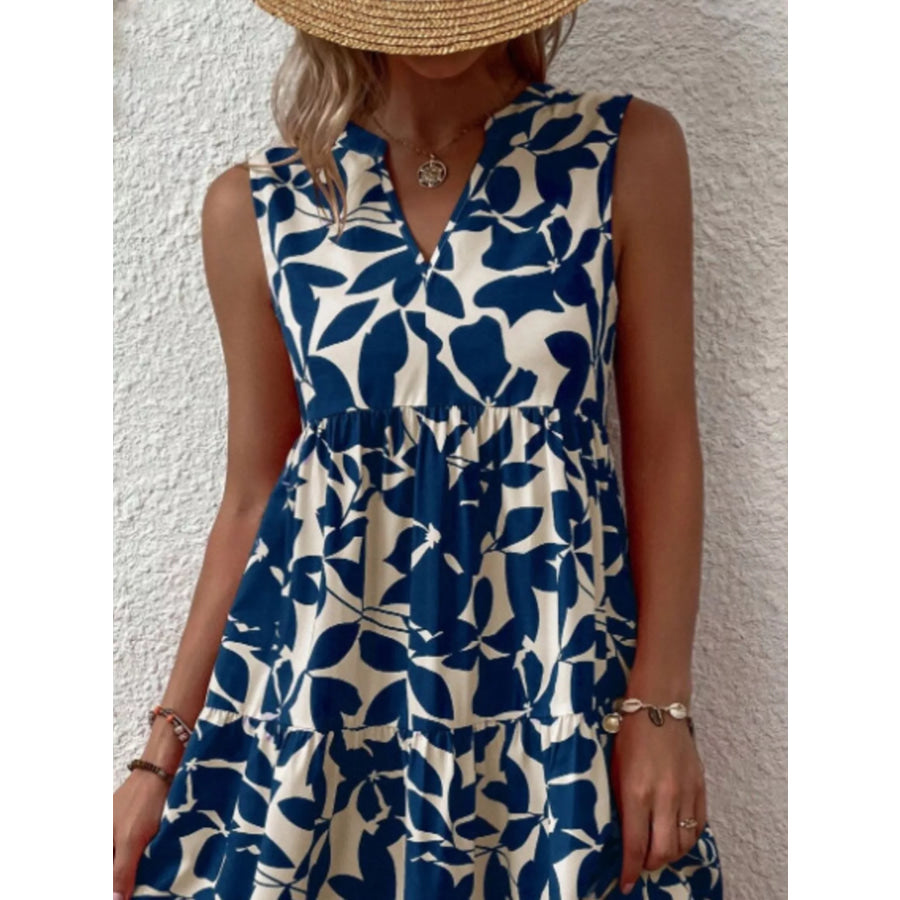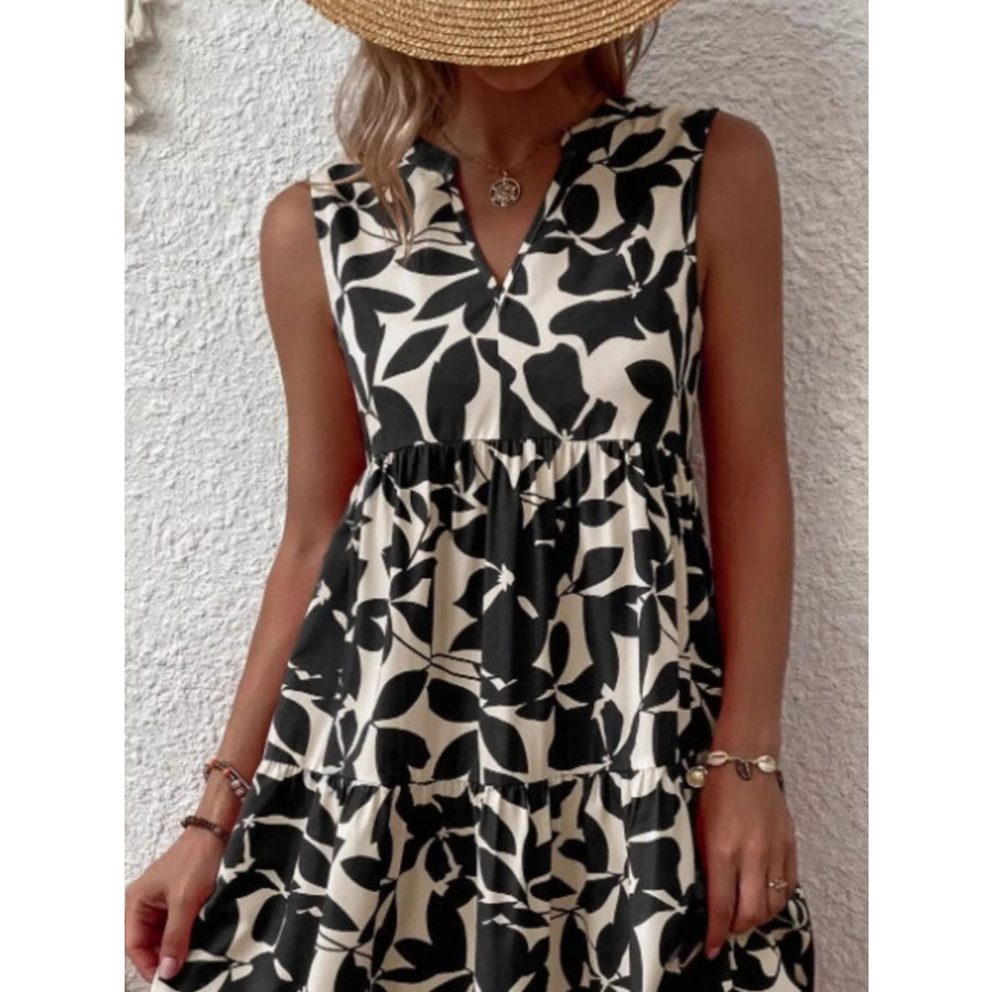 Full Size Printed Notched Sleeveless Mini Dress Plus Size