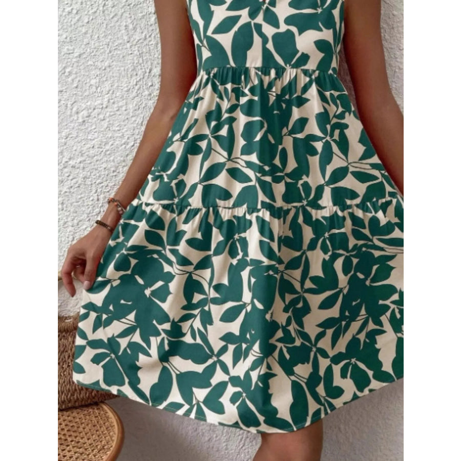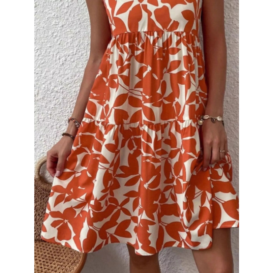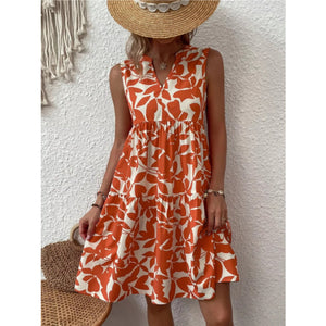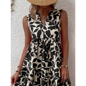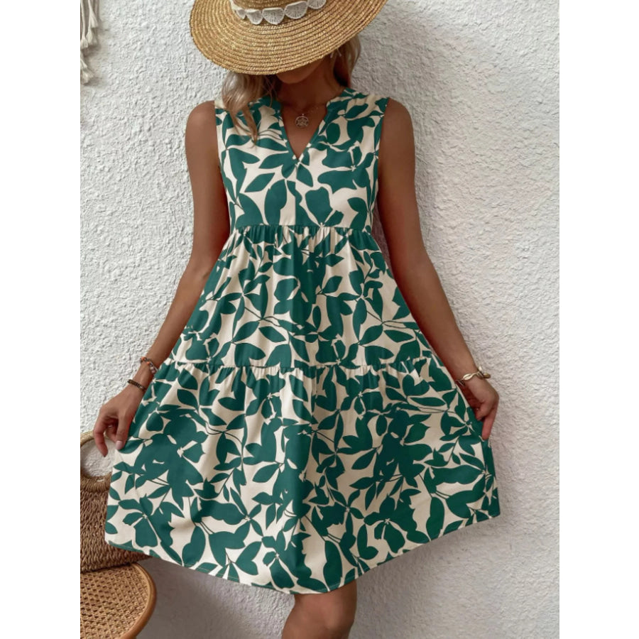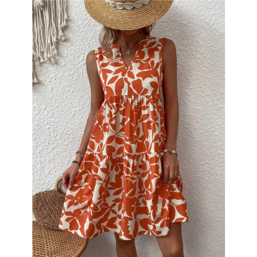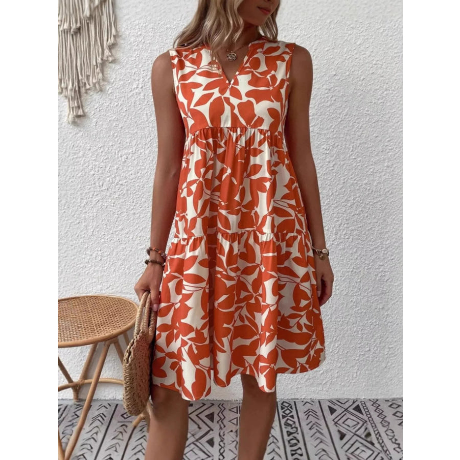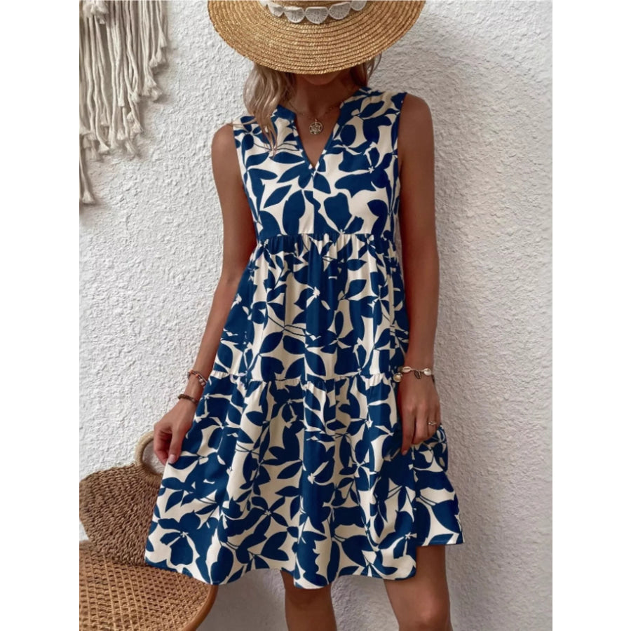 Full Size Printed Notched Sleeveless Mini Dress Plus Size