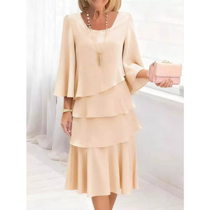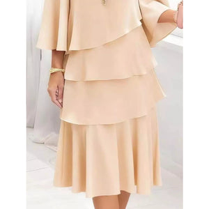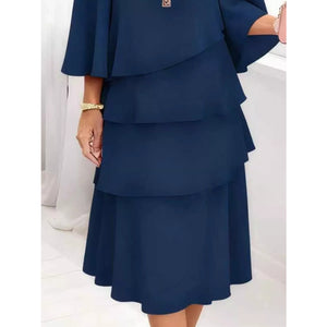 Full Size Ruffled Layered 3/4 Sleeve Dress Plus Size