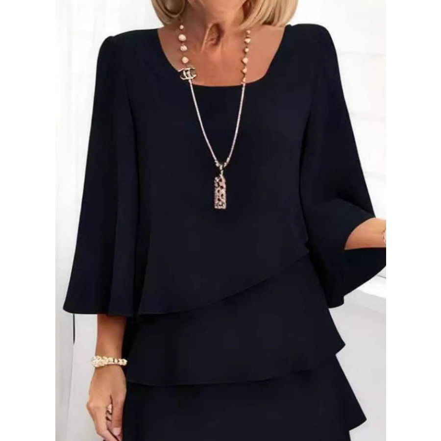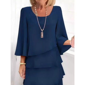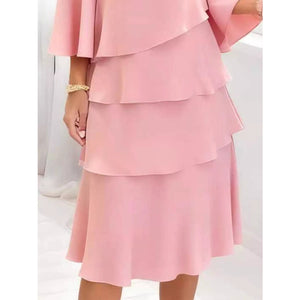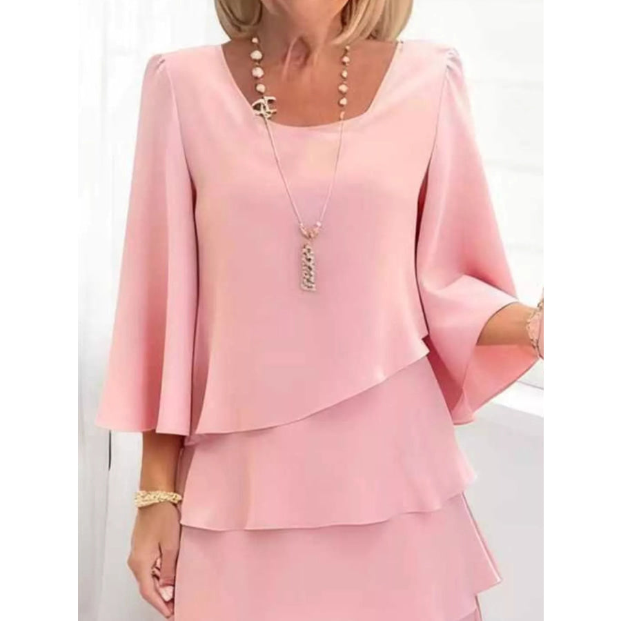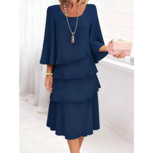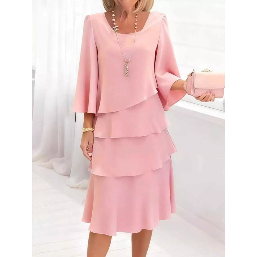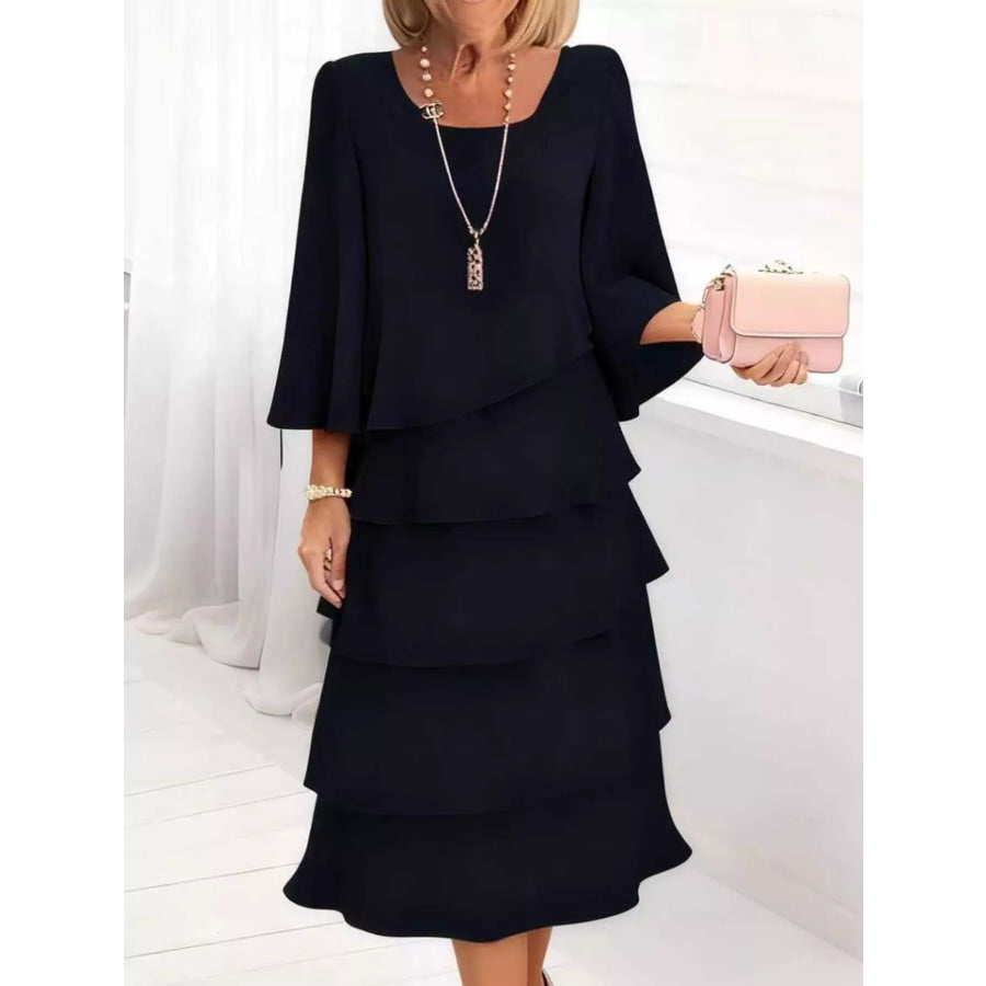 Full Size Ruffled Layered 3/4 Sleeve Dress Plus Size