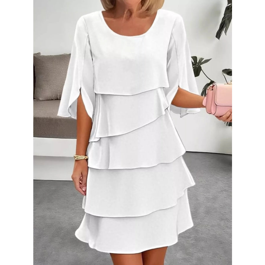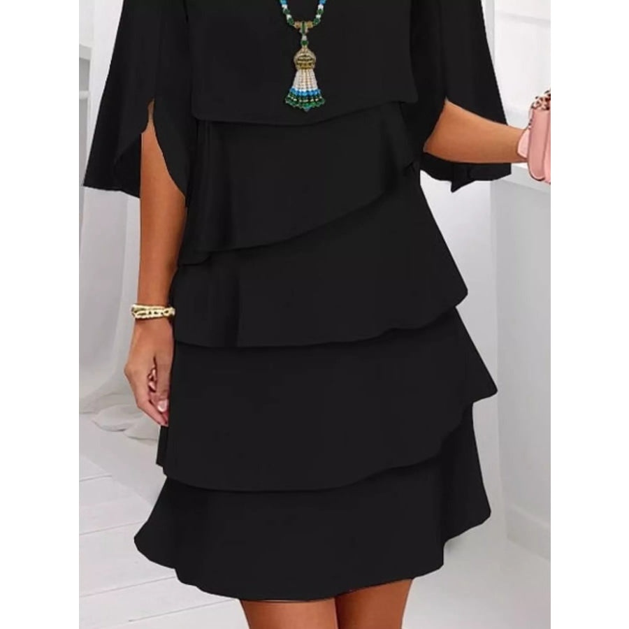 Full Size Ruffled Layered Flutter Sleeve Dress Plus Size