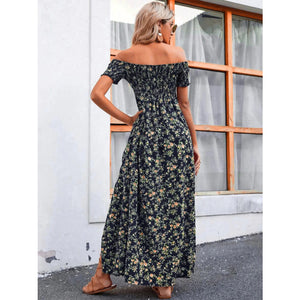 Full Size Slit Off-Shoulder Floral Midi Dress Plus Size